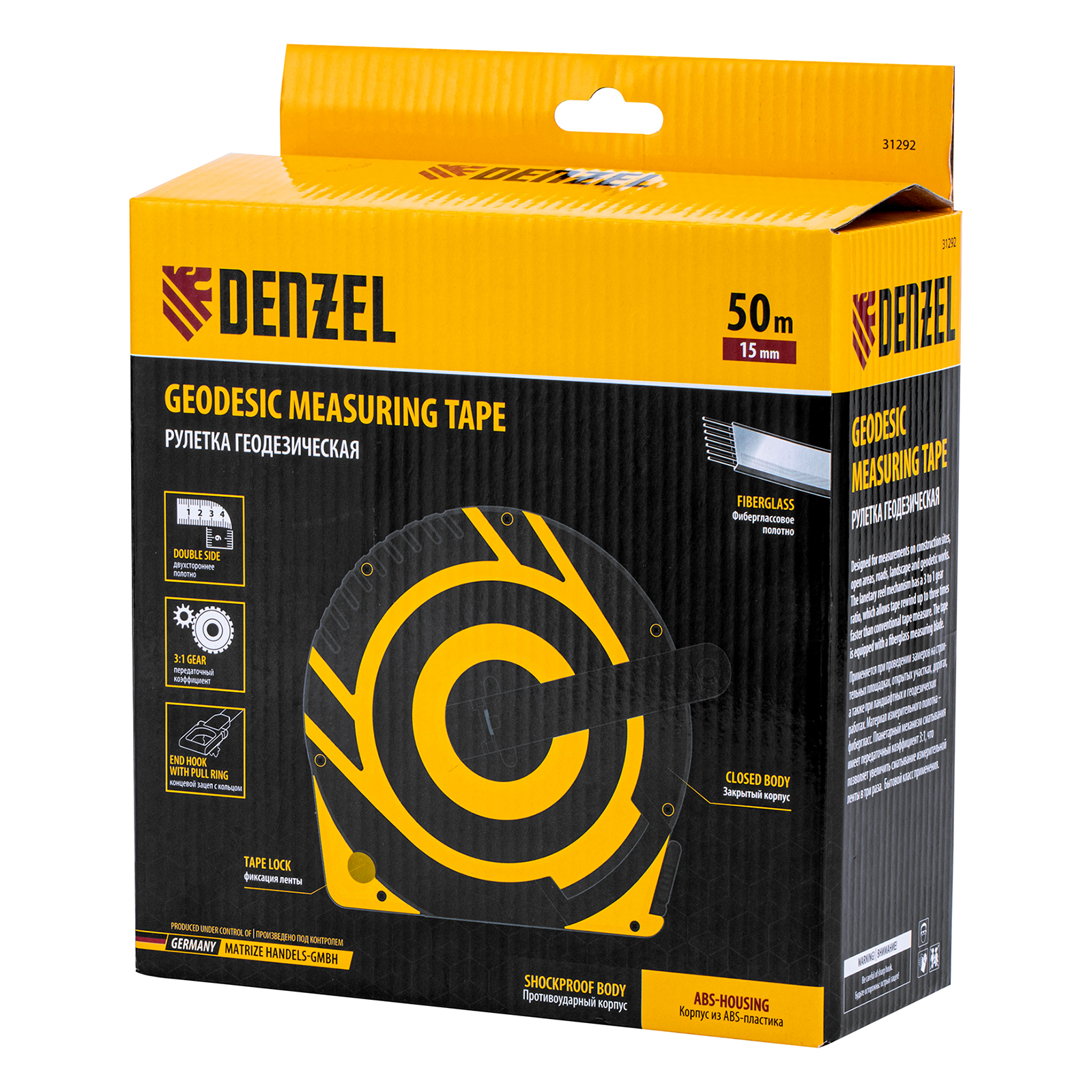 Рулетка геодезическая 50 м х 15 мм, закрытый корпус, фиберглассовая лента Denzel в Воронеже