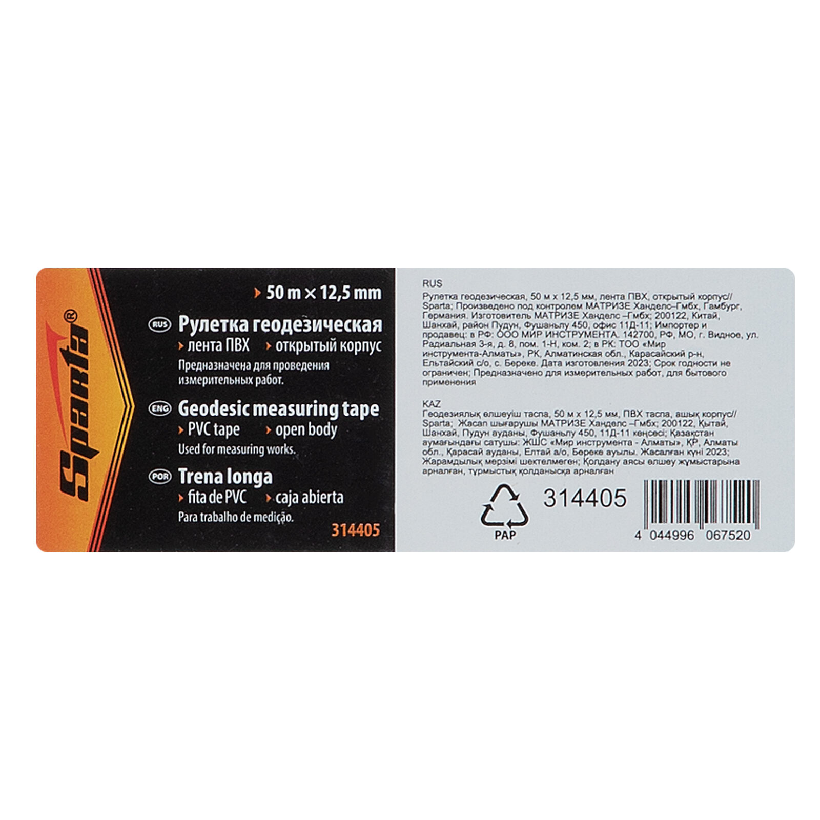 Рулетка геодезическая, 50 м х 12,5 мм, лента ПВХ, открытый корпус Sparta в Воронеже