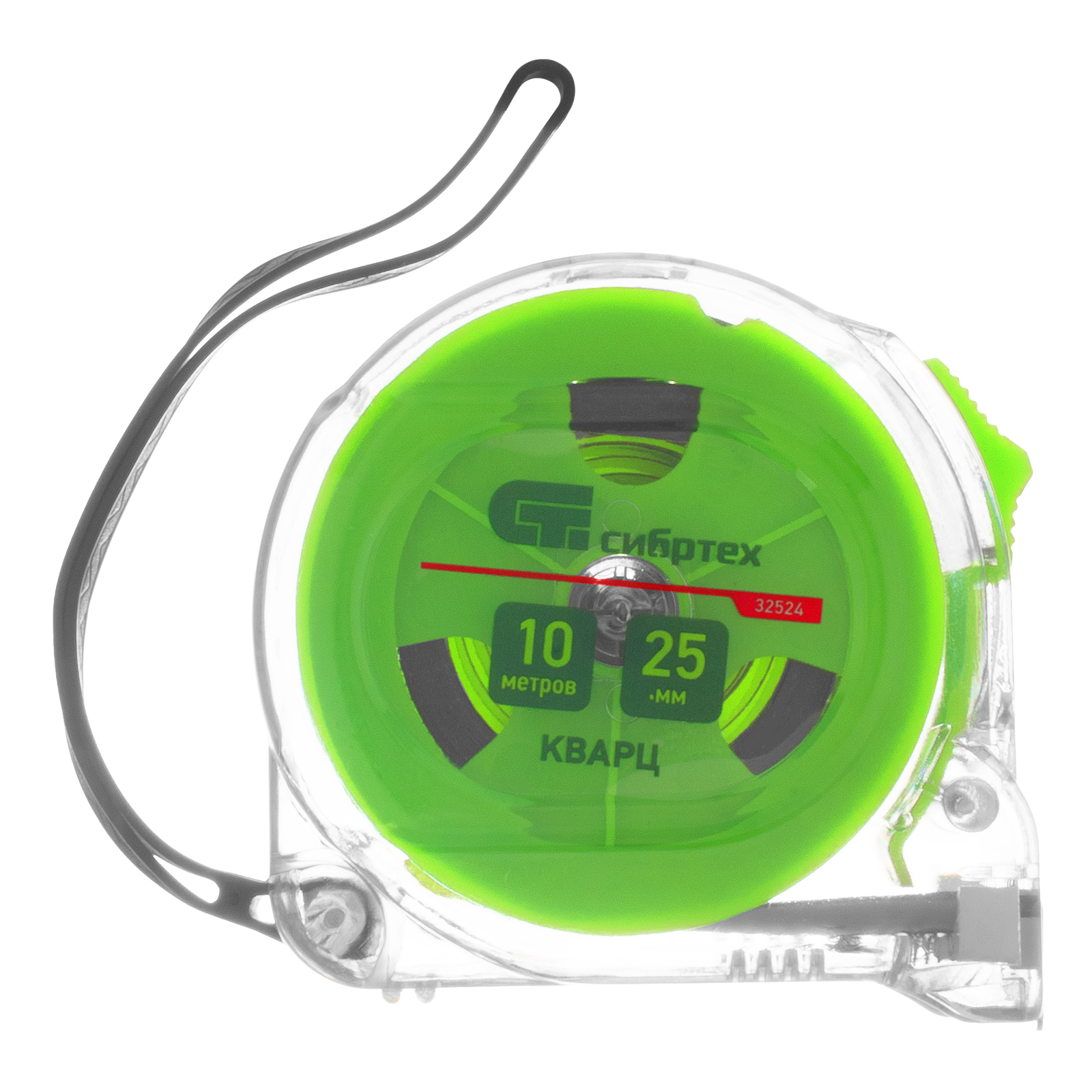 Рулетка Кварц,прозрачный корпус,амортизатор,10 м х 25 мм Сибртех в Воронеже