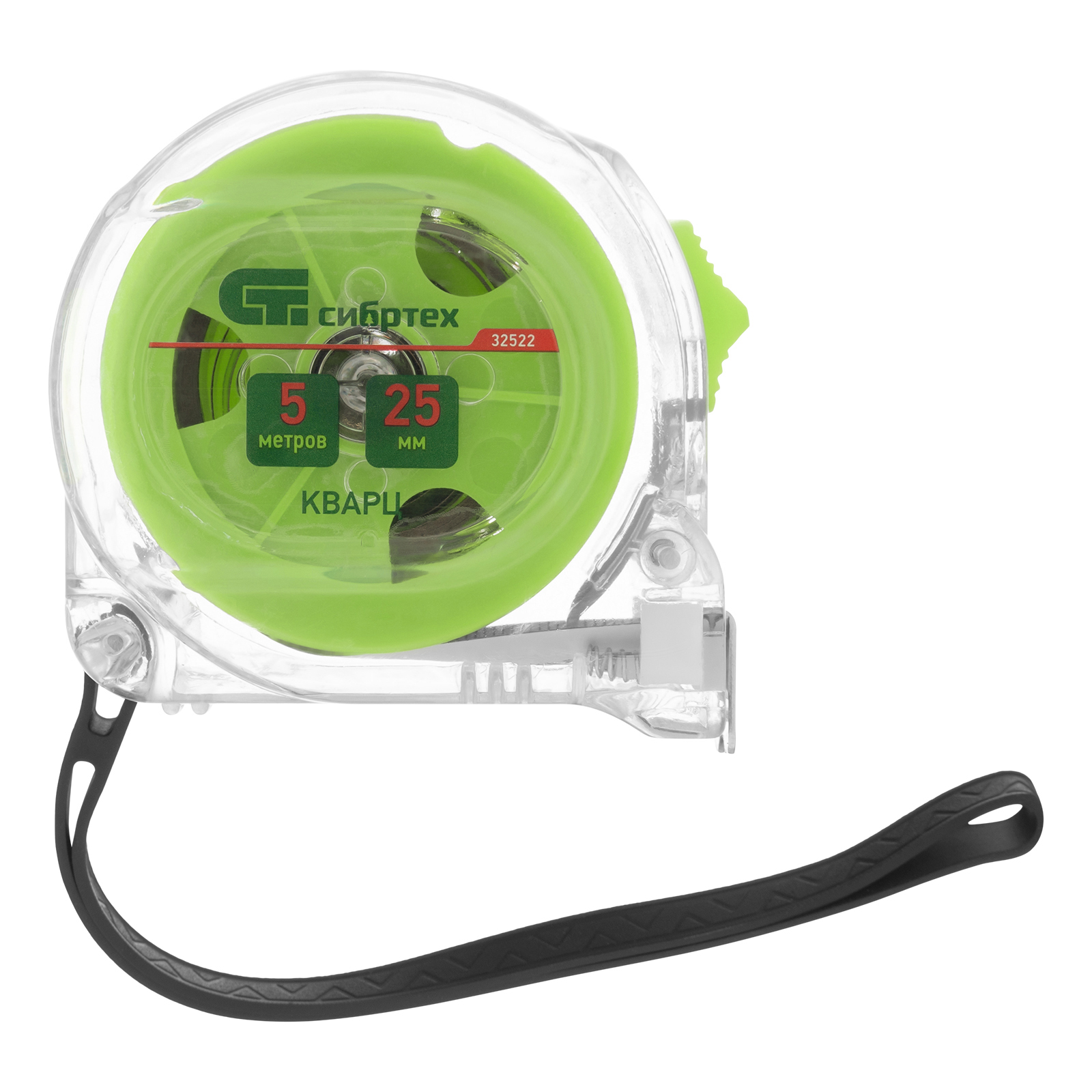 Рулетка Кварц,прозрачный корпус,амортизатор,5 м х 25 мм Сибртех в Воронеже