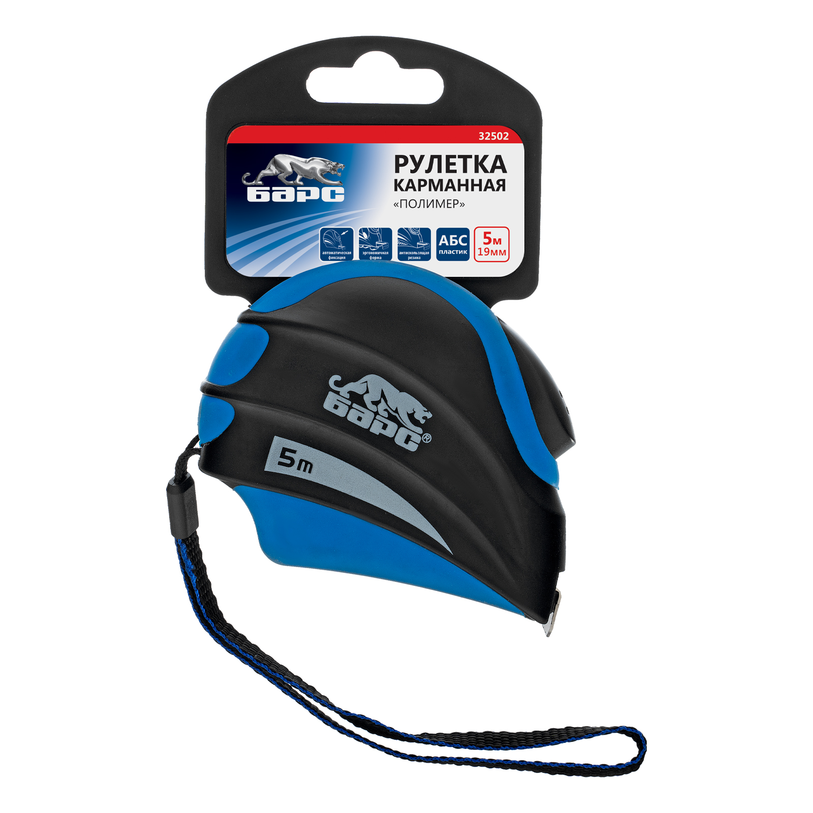 Рулетка Полимер,5 м х 19 мм,автоматическая фиксация,эргономичная форма Барс в Воронеже