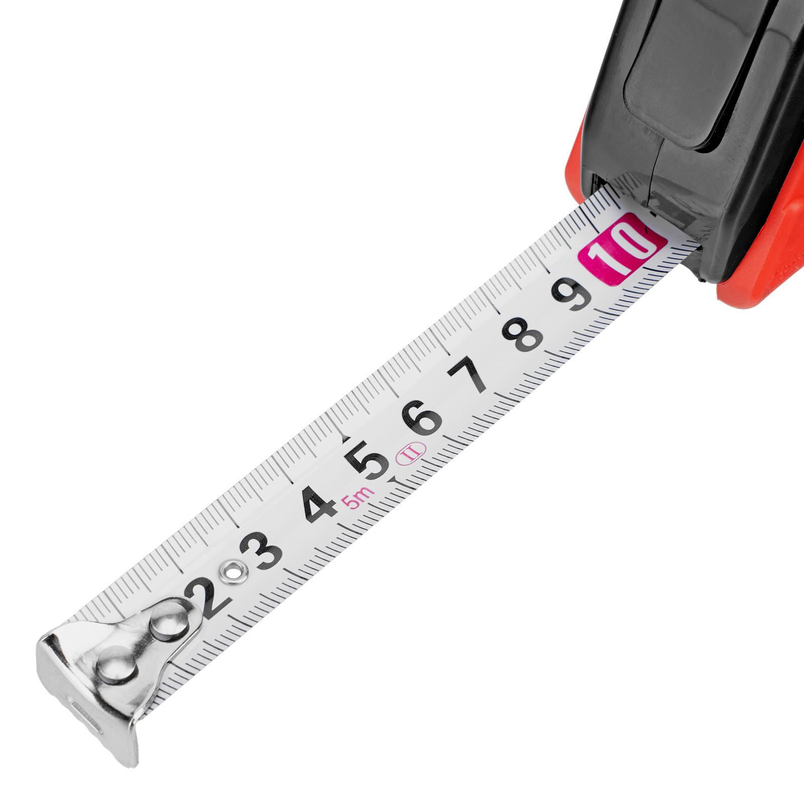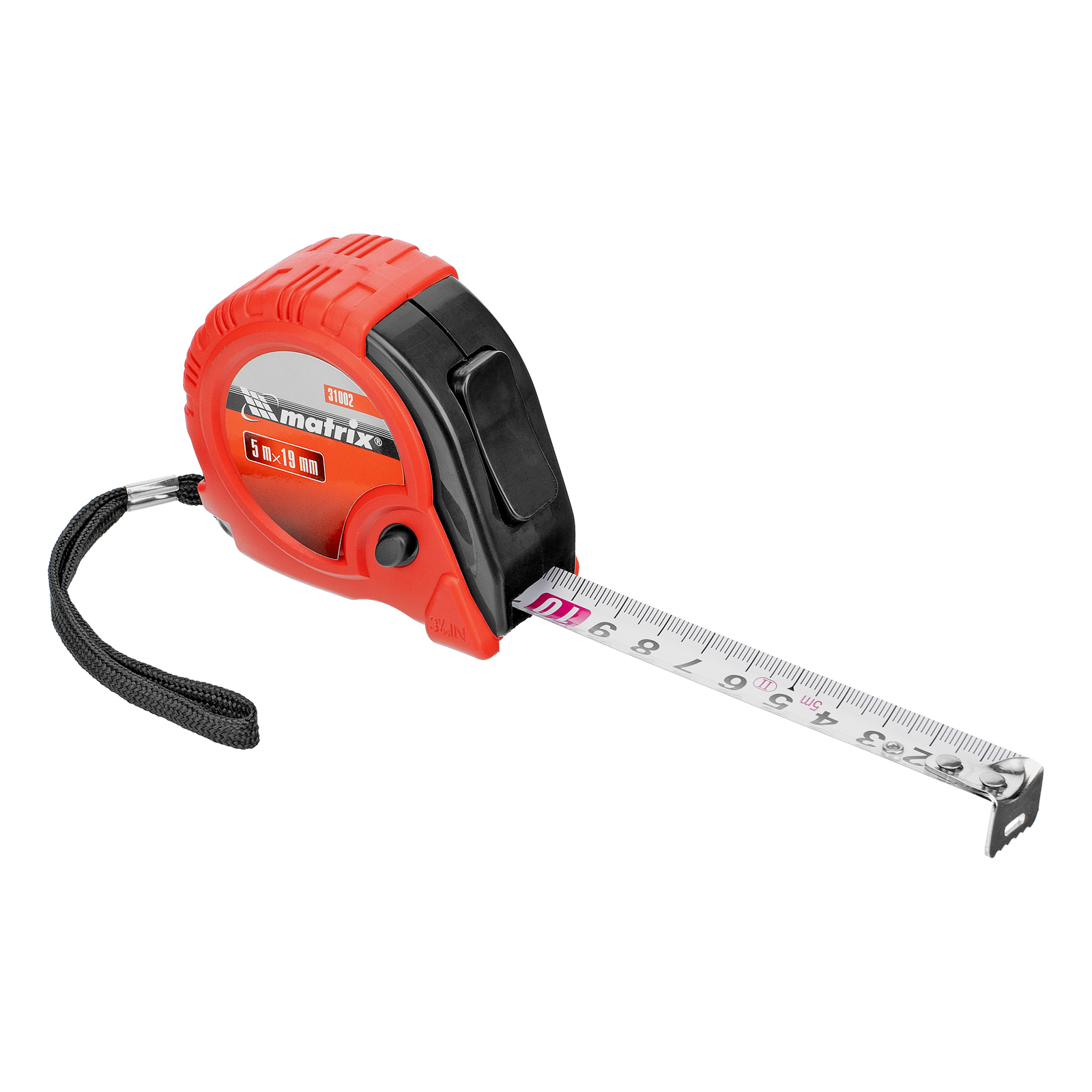 Рулетка Matrix Rubber 31002 с лентой длиной 5 м и шириной 19 мм, в обрезиненном корпусе, — измерительный инструмент для определения размеров и расстояний. Имеет самый распространенный 2 класс точности и цену деления 1 мм. Зацеп надежно закреплен двумя заклепками и не отскочит во время работы. Рулетка будет полезна во время ремонта и строительства, пригодится также в домашнем хозяйстве.