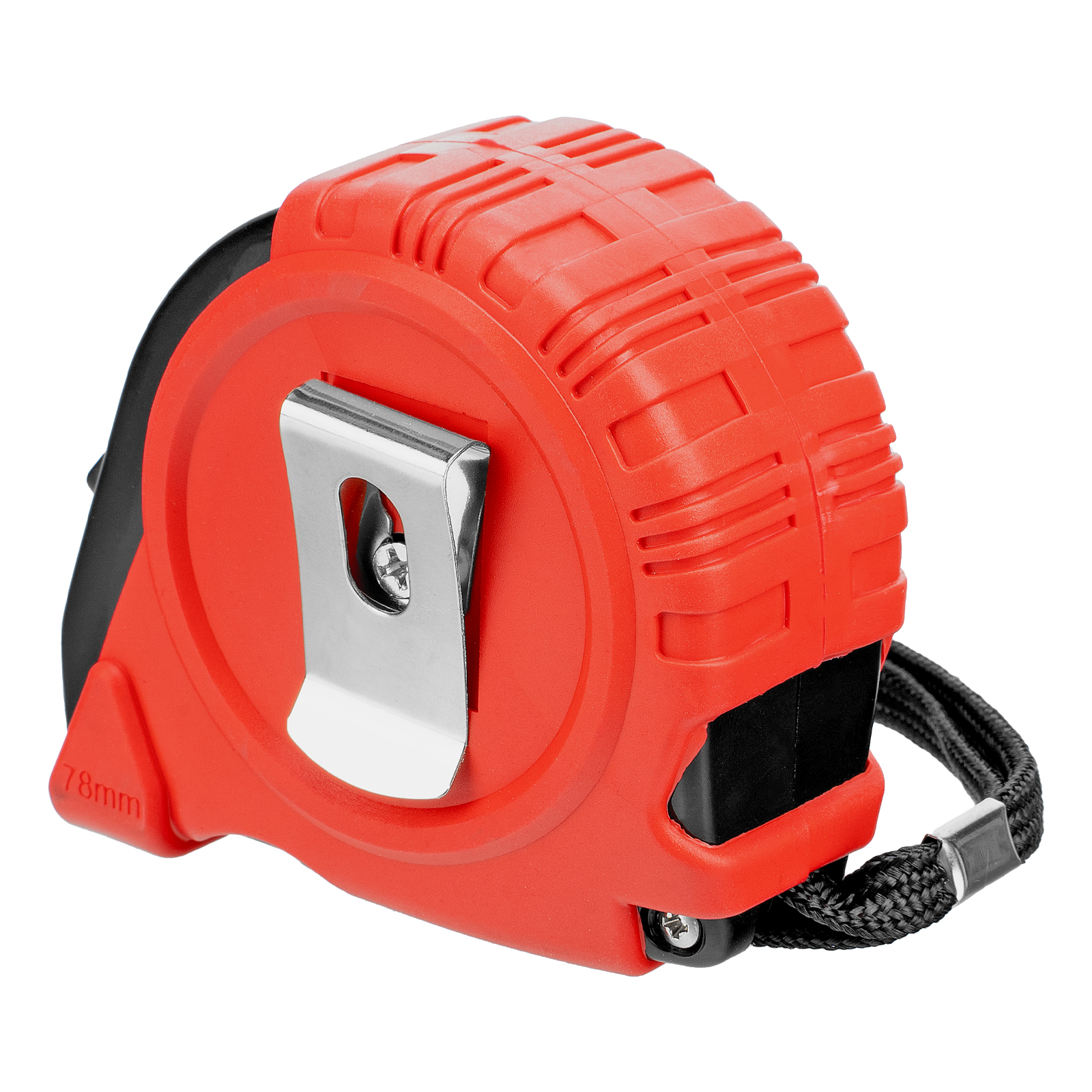 - Защита от падения — шнурок позволяет закрепить рулетку на запястье, клипса на корпусе — на поясном ремне.
