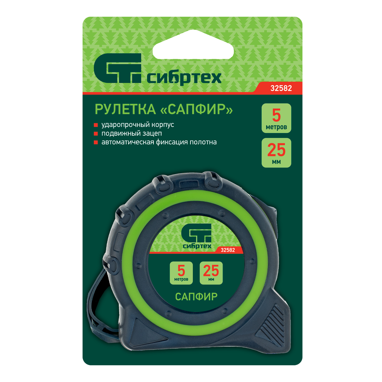 Рулетка Сапфир,двухкомпонентный корпус,5 м х 25 мм Сибртех в Воронеже