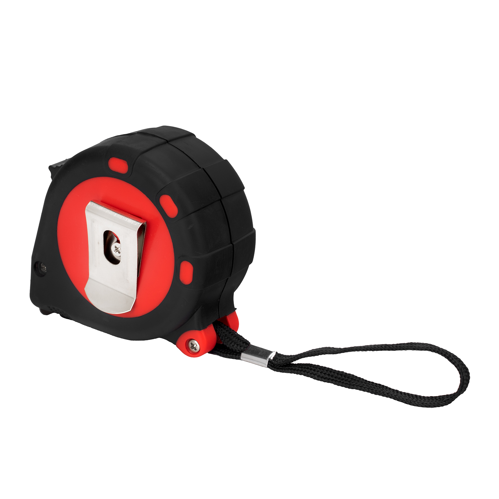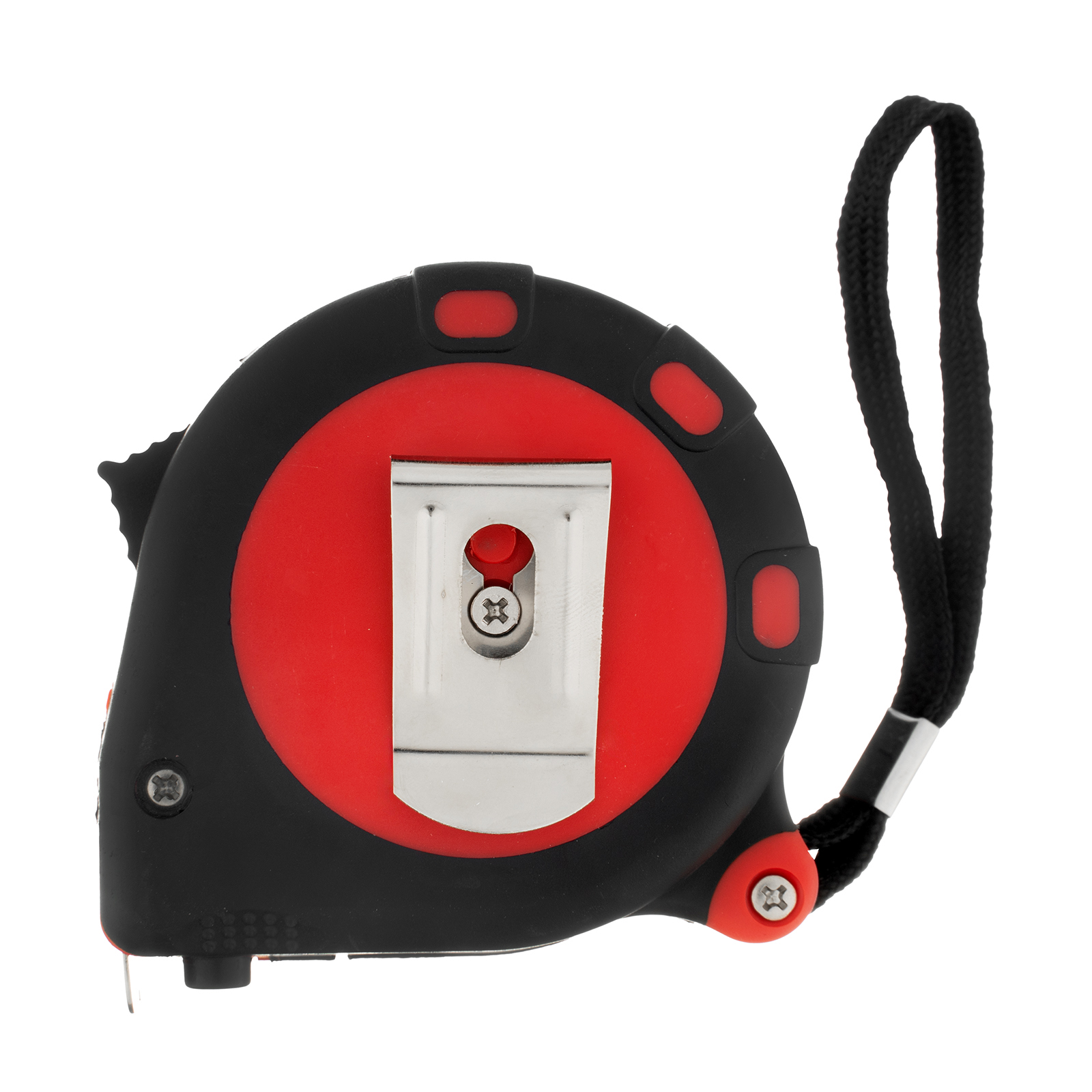 - Дополнительные возможности — нейлоновый ремешок позволяет подвесить рулетку на запястье, при помощи металлического зажима можно закрепить рулетку на поясе.