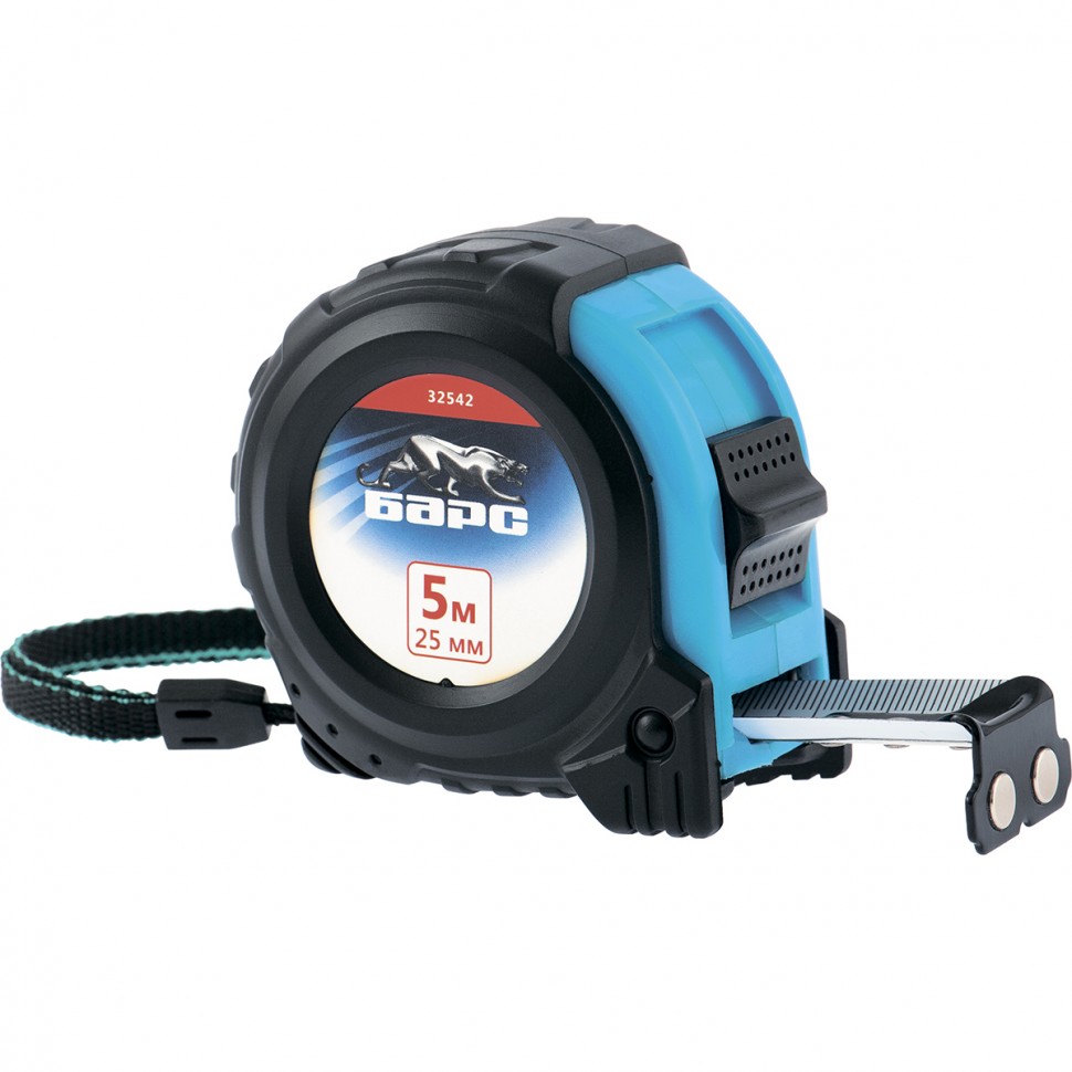 Рулетка Барс Вектор 32542 с утолщенным полотном 5 м х 25 мм и магнитным зацепом, в обрезиненном корпусе, используется при проведении линейных измерений. Незаменима в хозяйстве и на строительной площадке для вычисления размеров заготовок, конструкций и т.д.