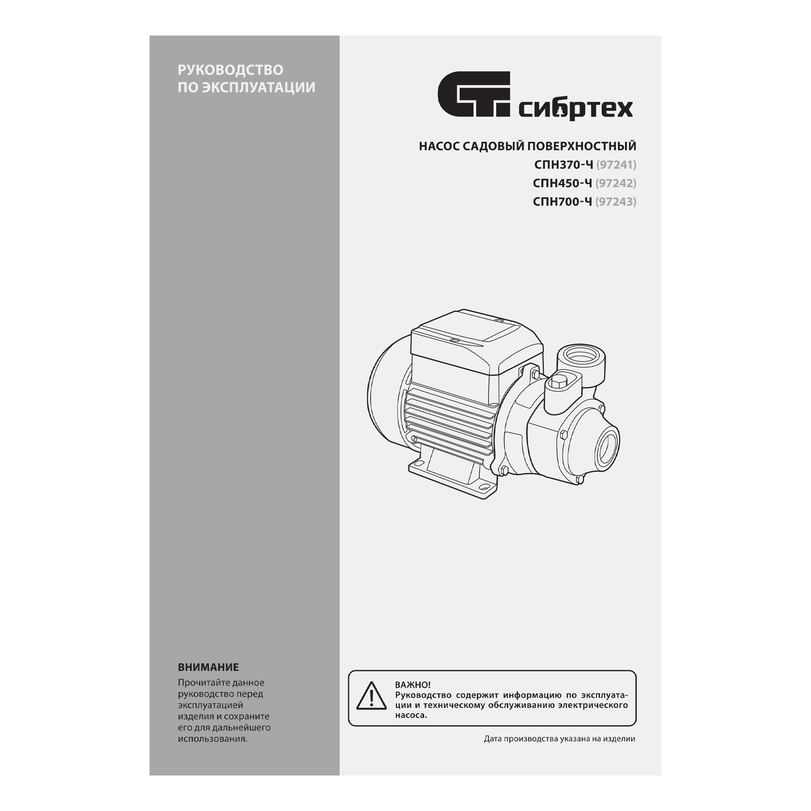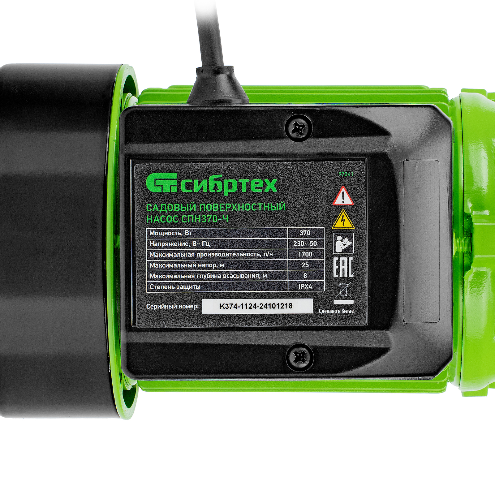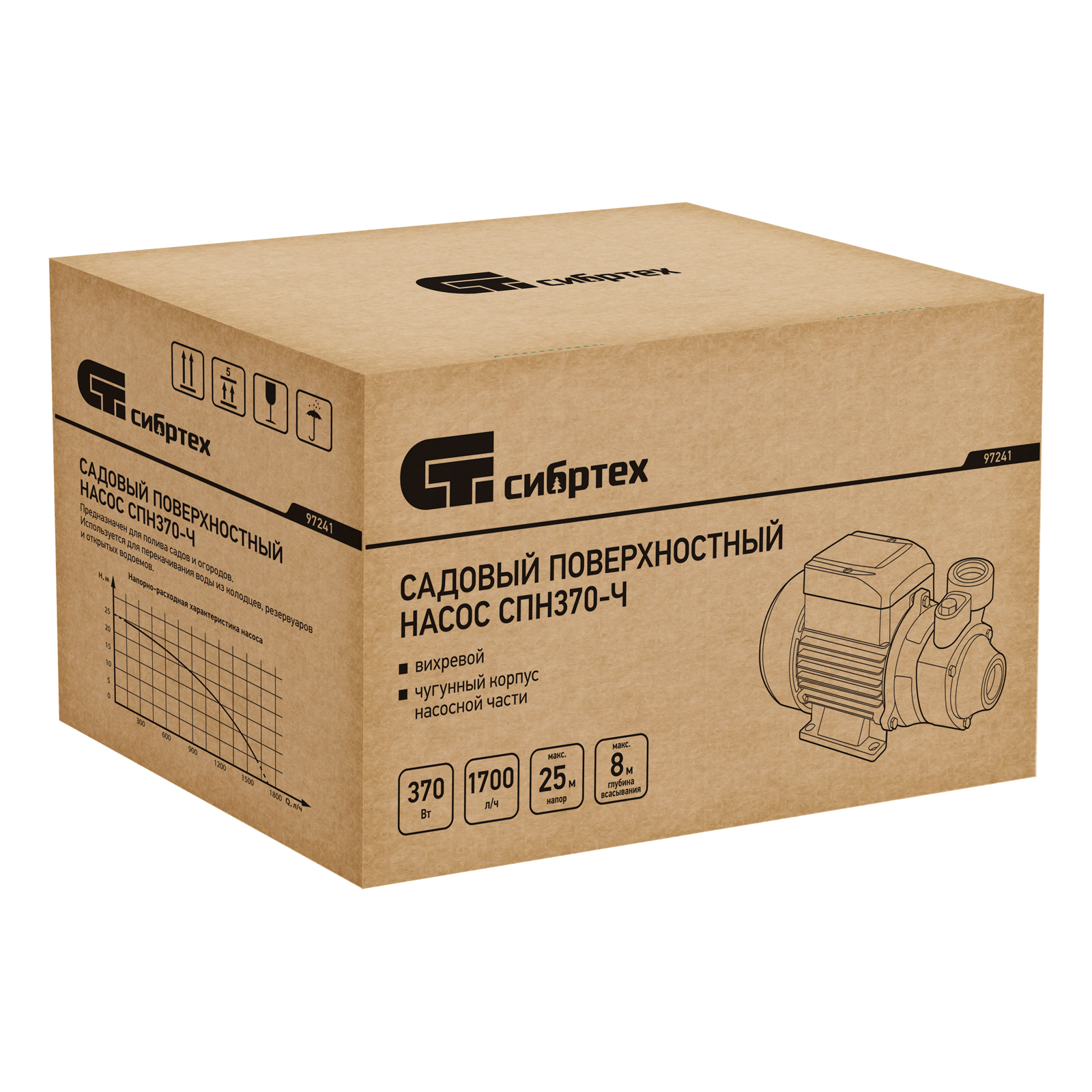 Садовый поверхностный насос СПН370-Ч, 370 Вт, напор 25 м, 1700 л/ч, чугун Сибртех в Воронеже