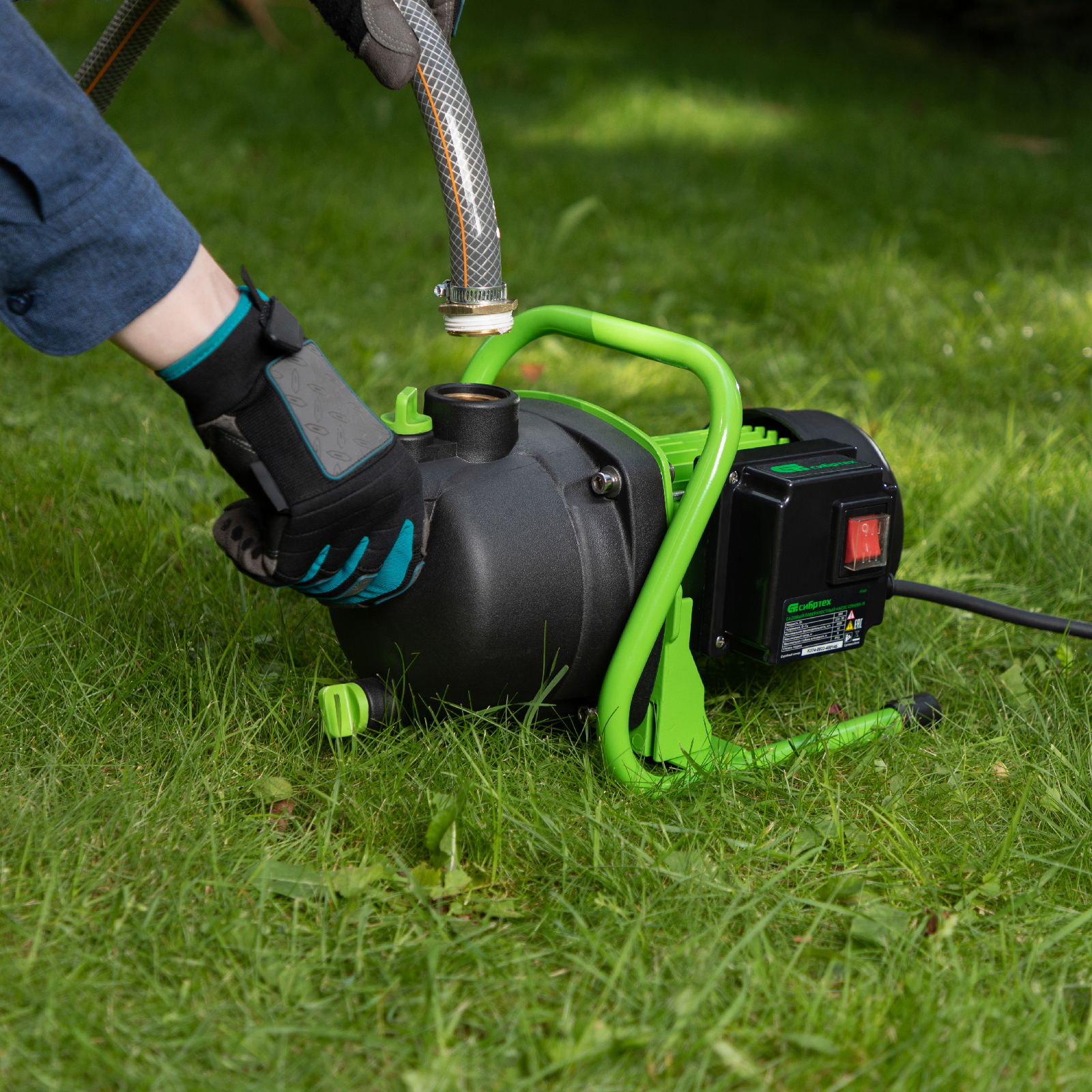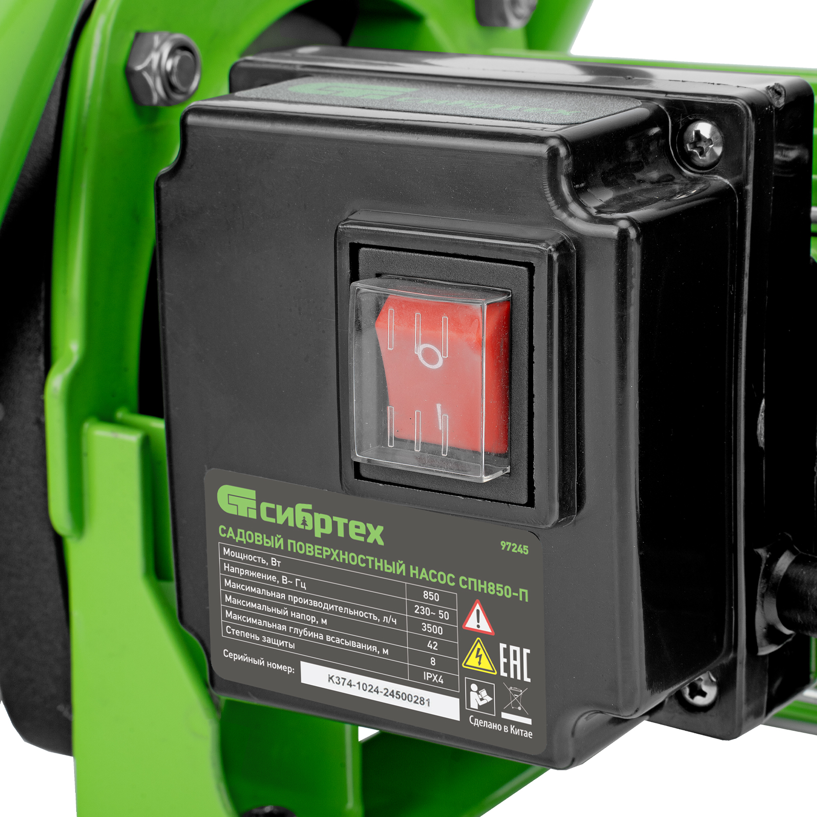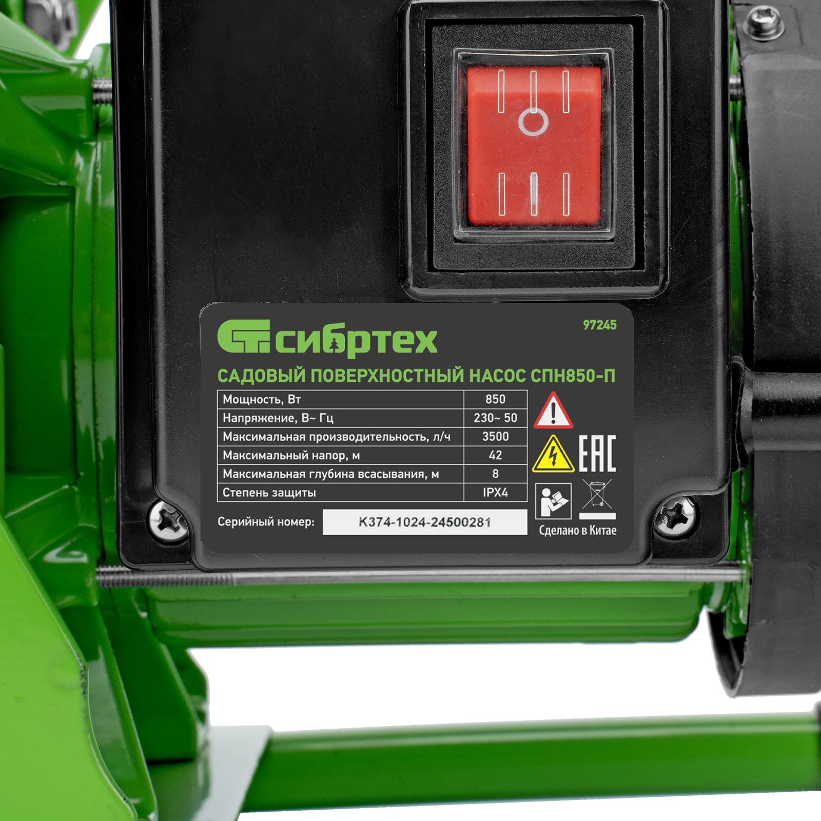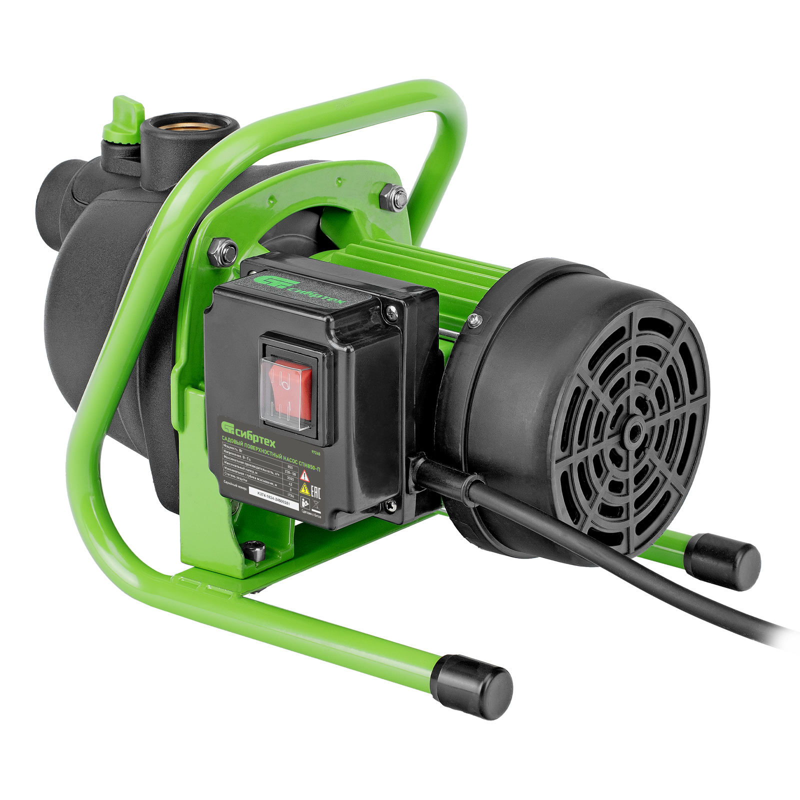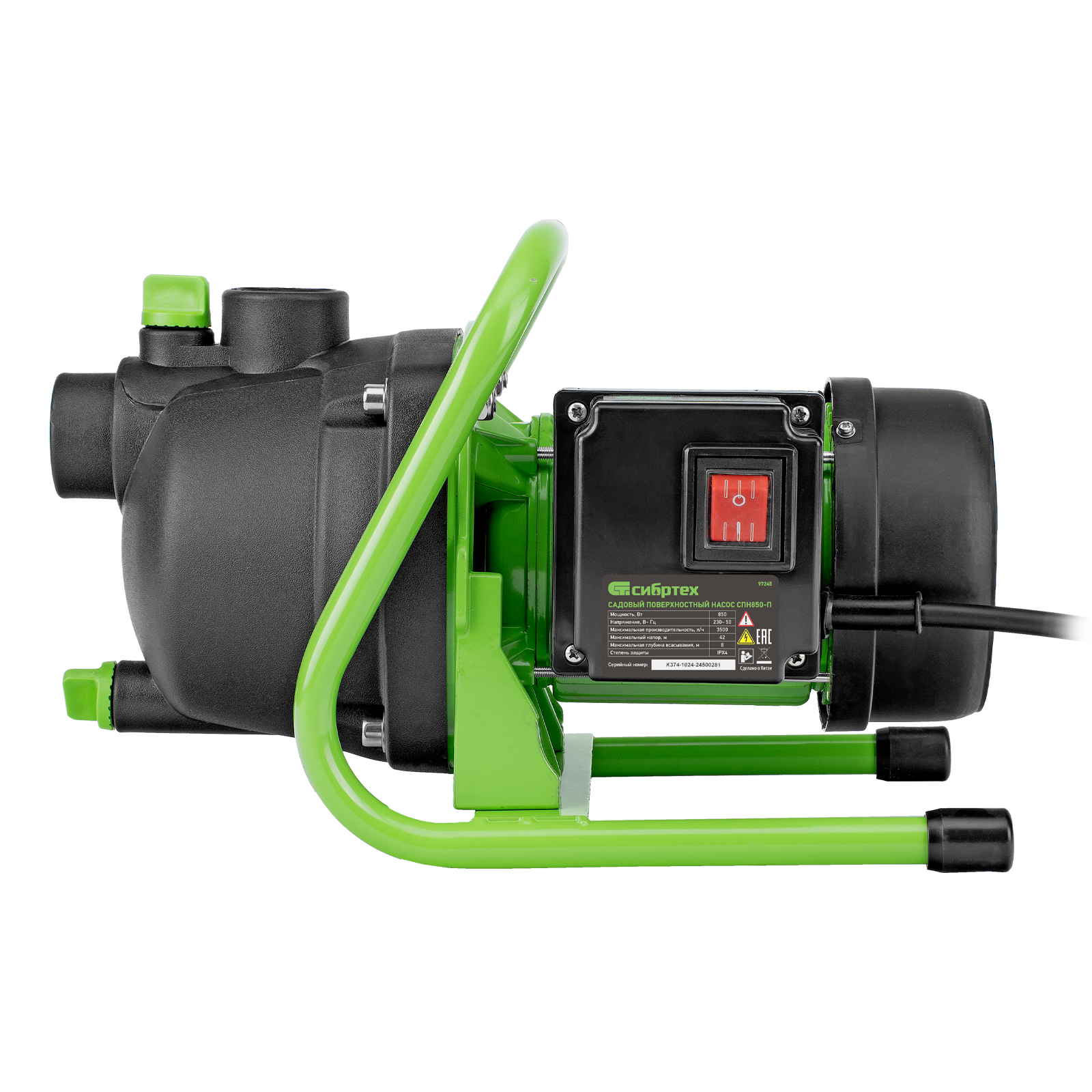 Садовый поверхностный насос Сибртех СПН850-П 97245 мощностью 850 Вт и производительностью 3500 л/ч, с корпусом насосной части из пластика, может забирать воду с глубины до 8 м из колодцев, водоемов и накопительных емкостей, создавая напор до 42 м. Используется для подачи воды на кухню, в душ или баню загородного дома, легко справляется с подачей воды на верхние этажи. Применяется также в системах орошения.
