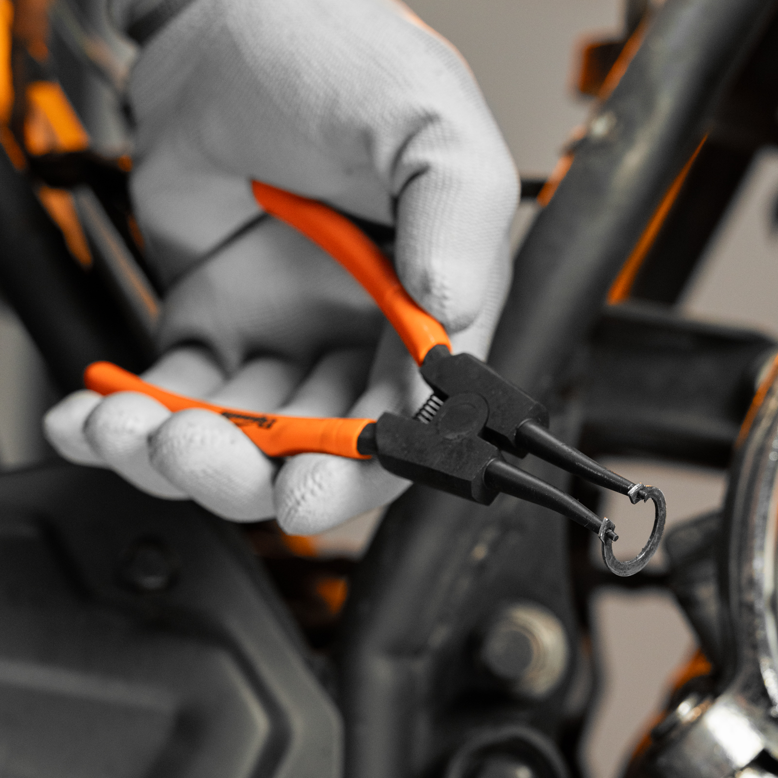 - Устойчивость к нагрузкам — съемник стопорных колец изготовлен из прочной углеродистой стали.