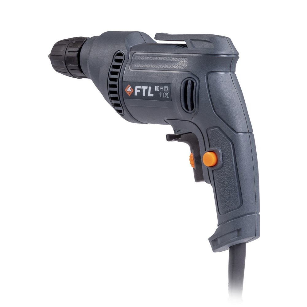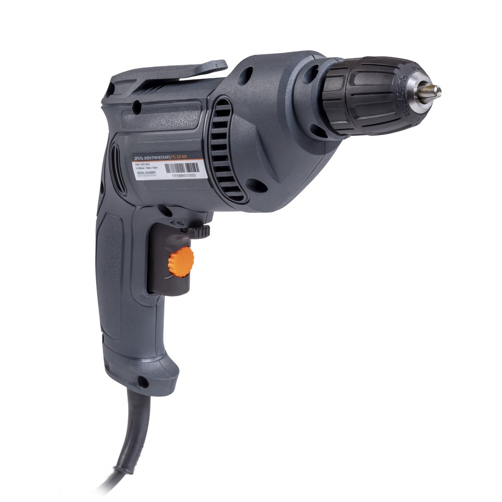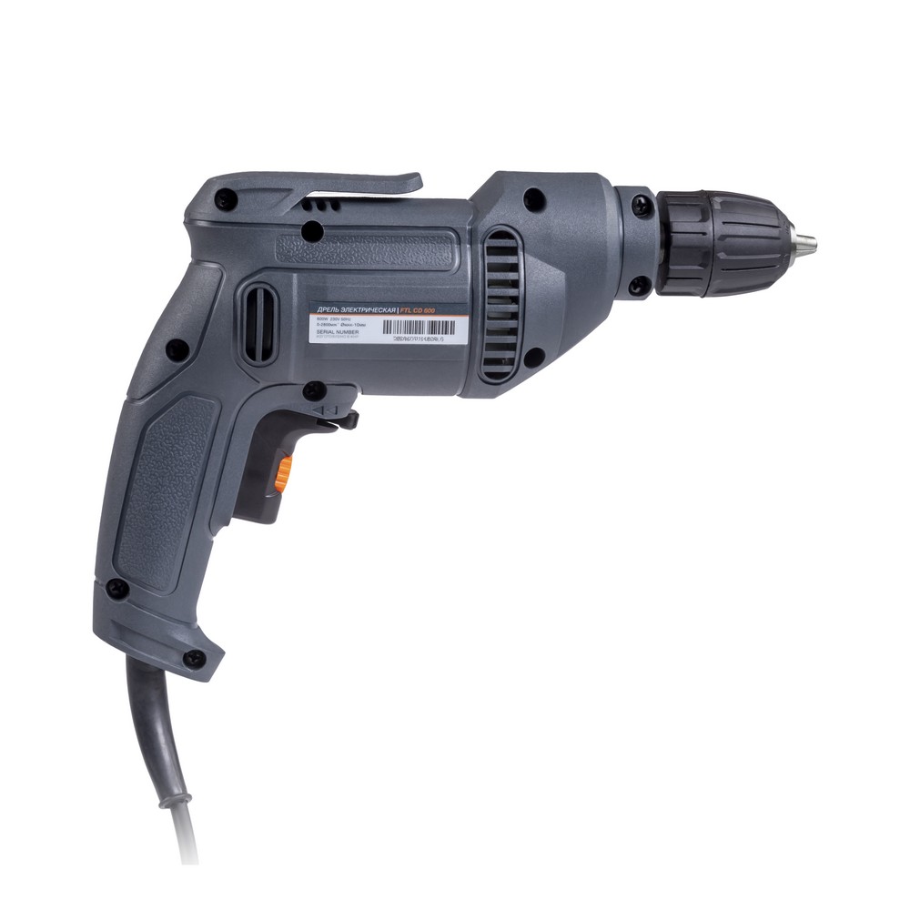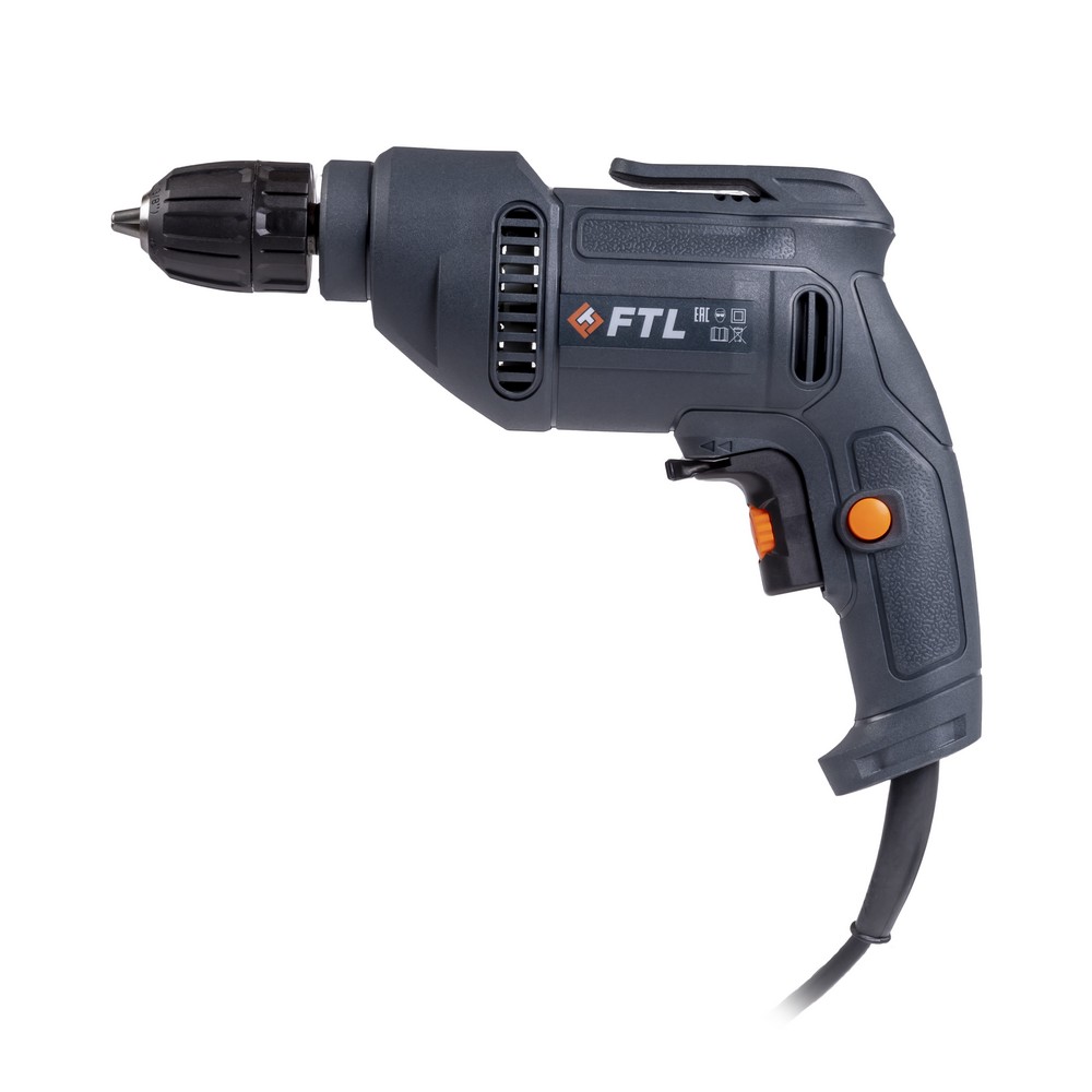 Сетевая безударная дрель FTL CD 600 - профессиональный инструмент, предназначенный для сверления отверстий в различных материалах. Электродвигатель с питанием от сети 230 В передаёт вращение с выходного вала на редуктор, снижающий частоту вращения и увеличивающий крутящий момента патрона, в котором зафиксировано сверло или иной расходный материал. Дрель FTL CD 600 имеет плавную регулировку оборотов в зависимости от нажатия на курок и способна развивать максимальную скорость в 2800 об/мин, при этом, с помощью интегрированного в курок тиристора можно ограничить развиваемую скорость, что значительно расширяет функционал, давая возможность выполнения работ, требующих сниженных оборотов двигателя. Сетевое питание позволяет работать без ограничений по времени и пауз связанных с заменой аккумулятора или его зарядкой. Устройство оснащено бесключевым быстрозажимным патроном для быстрой и комфортной установки оснастки диаметром от 0,8 до 10,0 мм. Наличие функции реверса позволяет извлечь застрявшее сверло из материала. Дополнительный комфорт работы обеспечивается за счет противоскользящего покрытия рукоятки для лучшего удержания инструмента и наличия клипсы на поясной ремень, которая позволяет держать дрель всегда под рукой и наготове, что особенно важно при нахождении на стремянке или лестнице. Легкий вес изделия в 1,2 кг позволяет долго работать без лишнего переутомления.