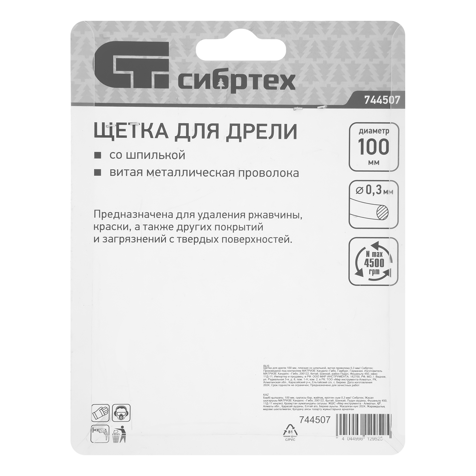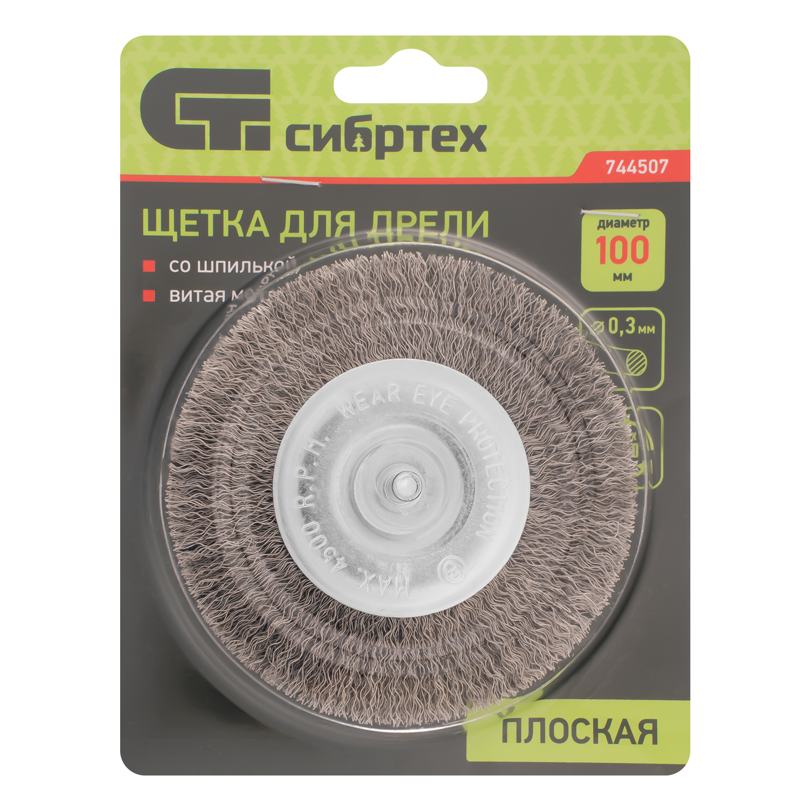 Щетка для дрели 100 мм, плоская со шпилькой, витая проволока Сибртех в Воронеже