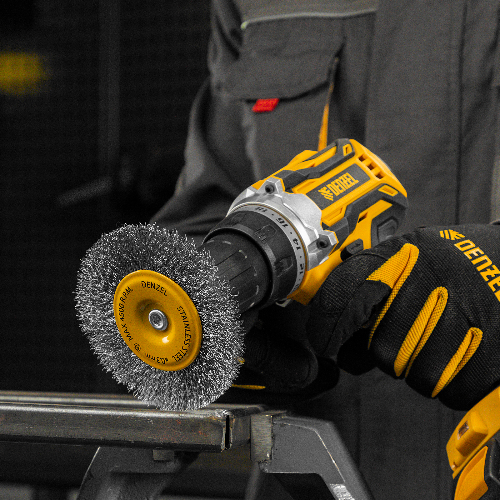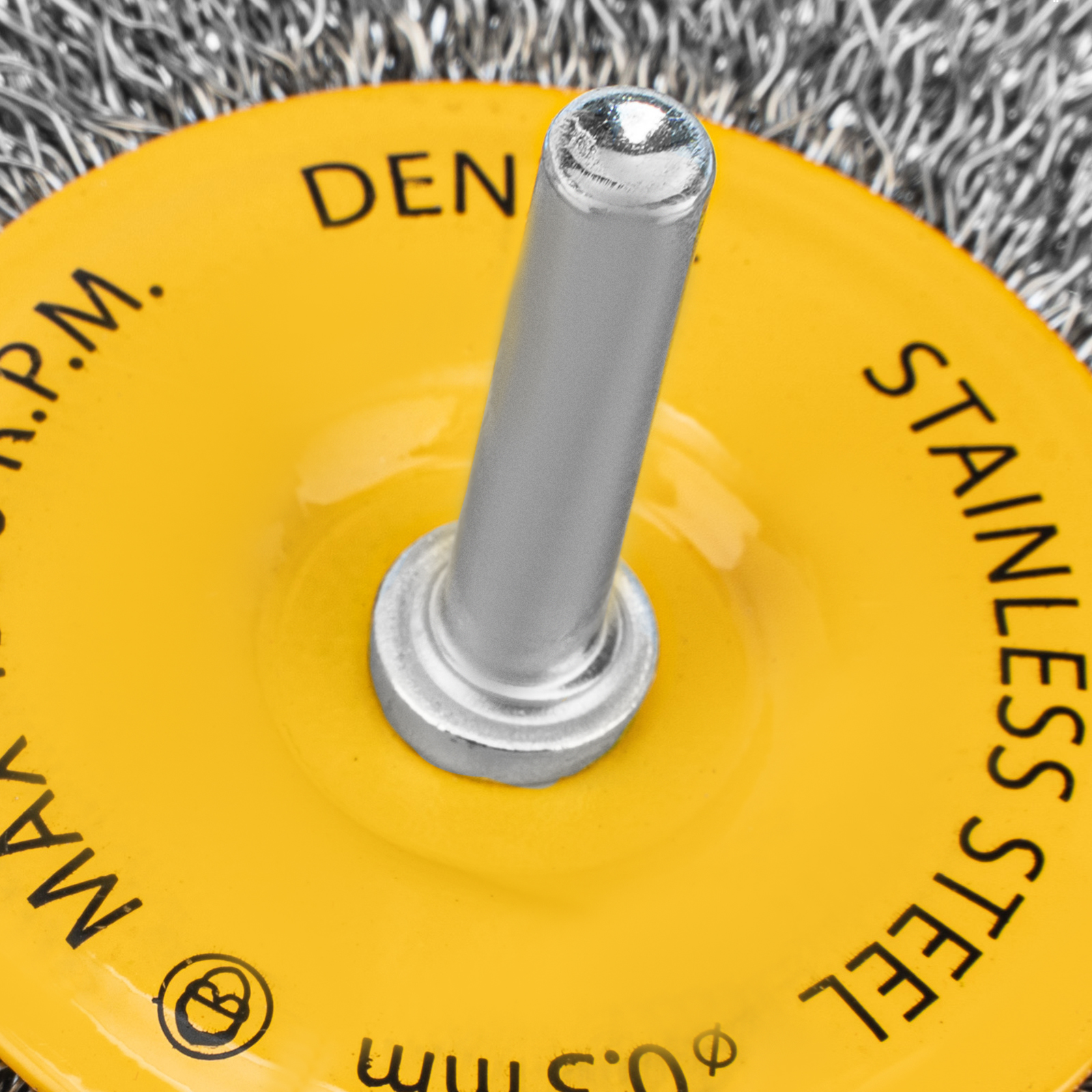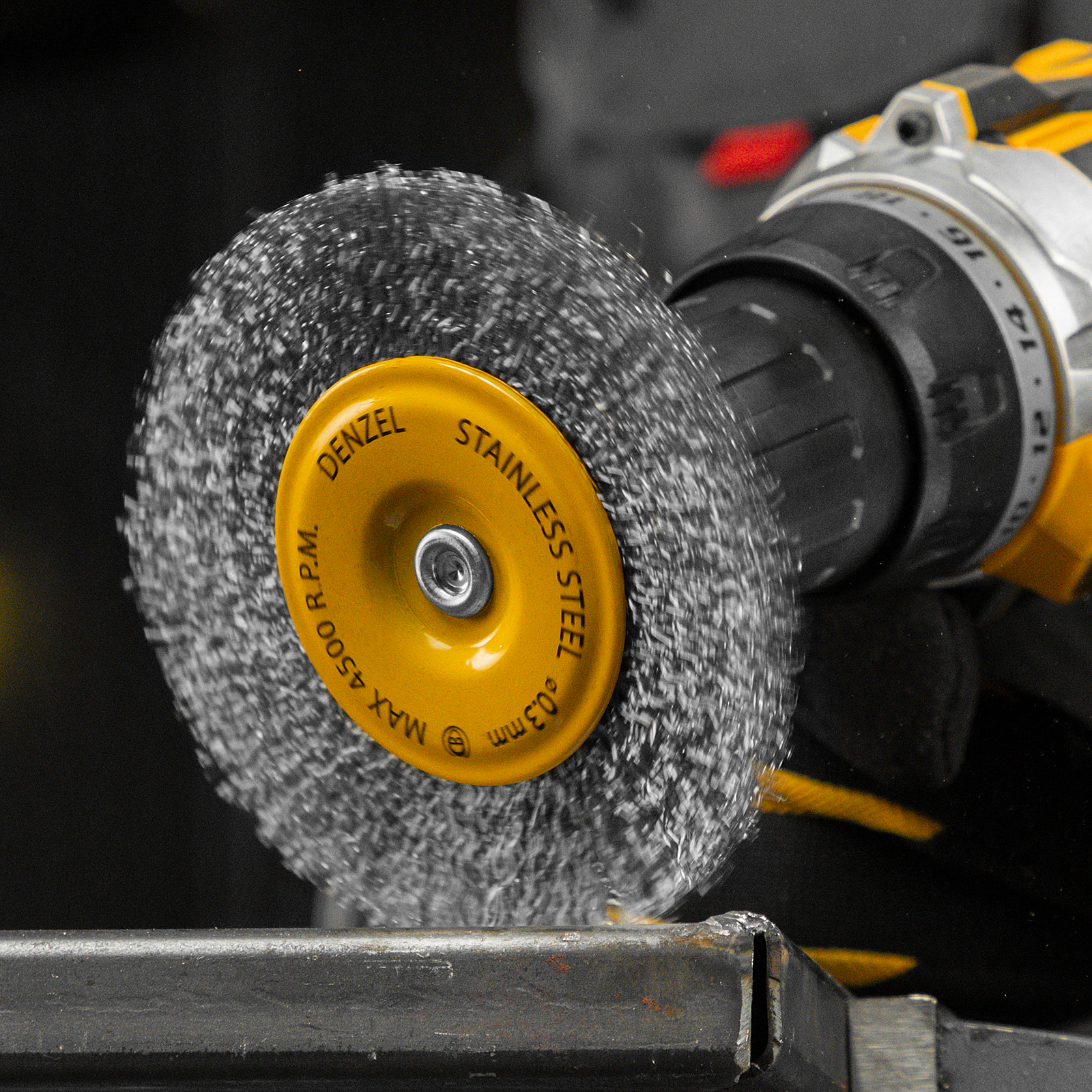 Щетка для дрели 100 мм, Плоская, со шпилькой, нержавеющая витая проволока Denzel в Воронеже