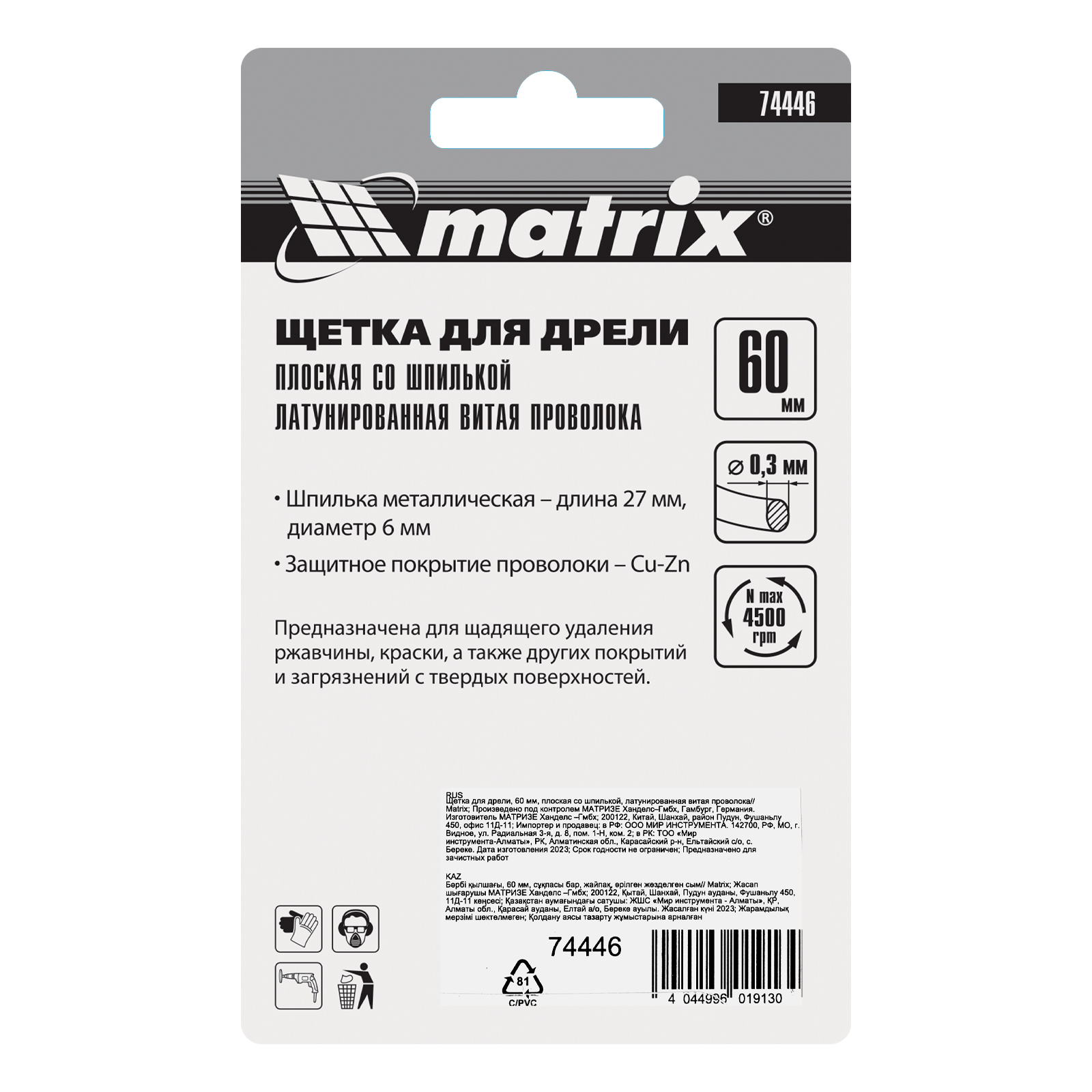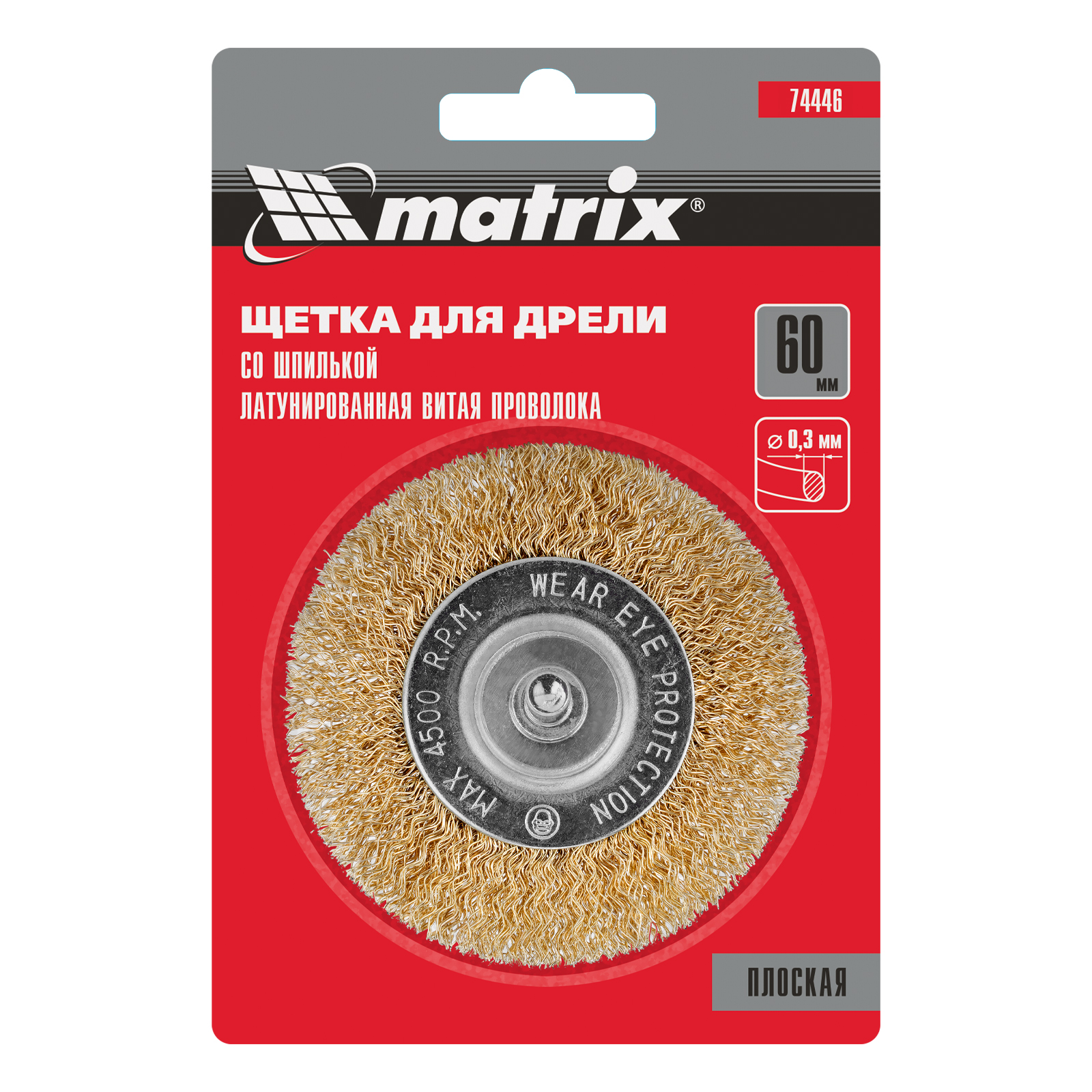 Щетка для дрели, 60 мм, плоская со шпилькой, латунированная витая проволока Matrix в Воронеже