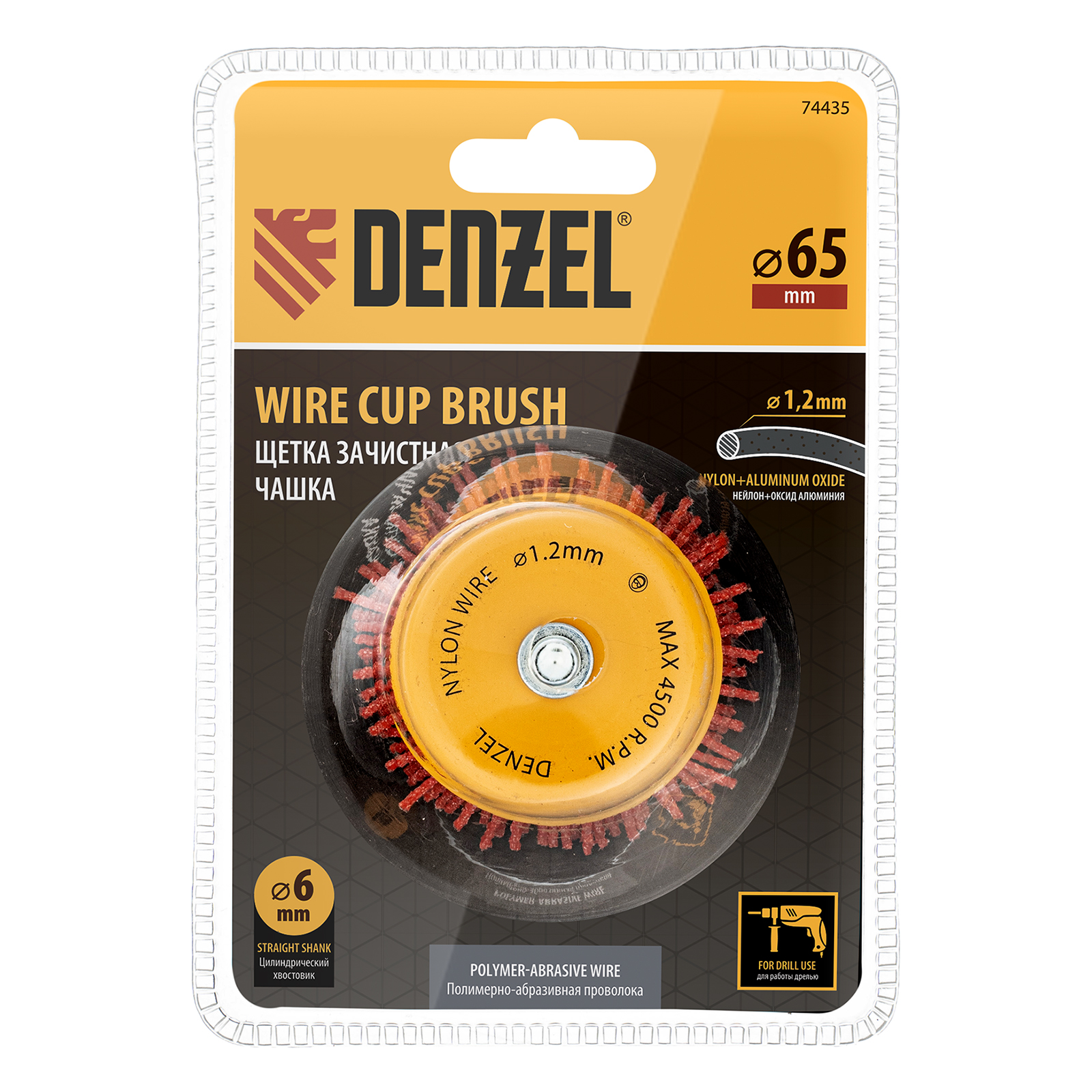 Щетка для дрели, 65 мм, Чашка, со шпилькой, нейлоновая щетина Denzel в Воронеже