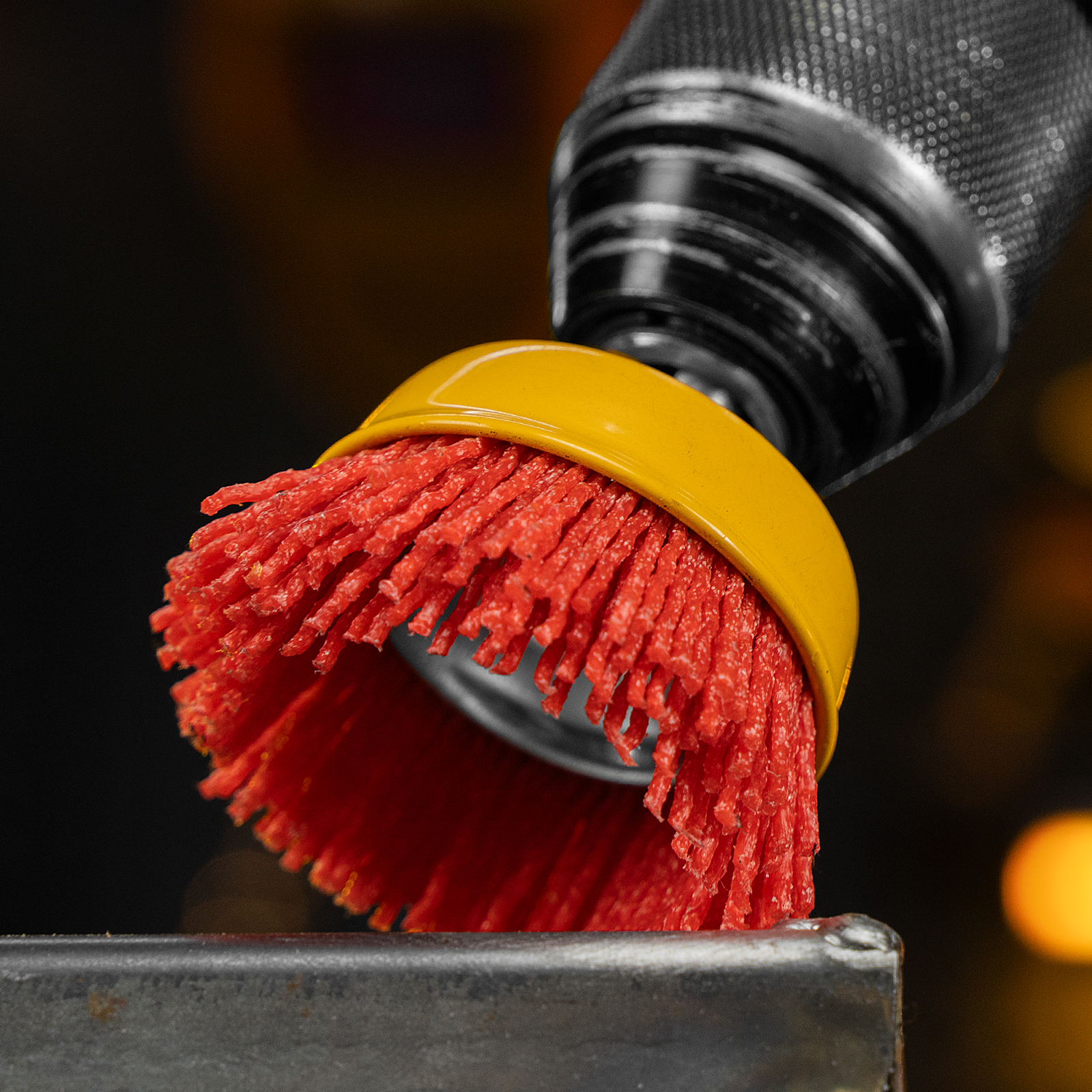 Щетка Denzel 74435 в форме чашки диаметром 65 мм, со шпилькой и нейлоновой щетиной, — насадка для дрели, предназначенная для выполнения шлифовальных работ по пластику, древесине, стали и цветным металлам. Щетина изготовлена из высококачественного нейлона с нанесенным абразивом из оксида алюминия. Щетка оптимальна для деликатного удаления загрязнений, краски, пятен ржавчины с твердых поверхностей. Позволяет придать шероховатость поверхности, подходит для браширования древесины. Насадка удобна для обработки плоских деталей большой площади.