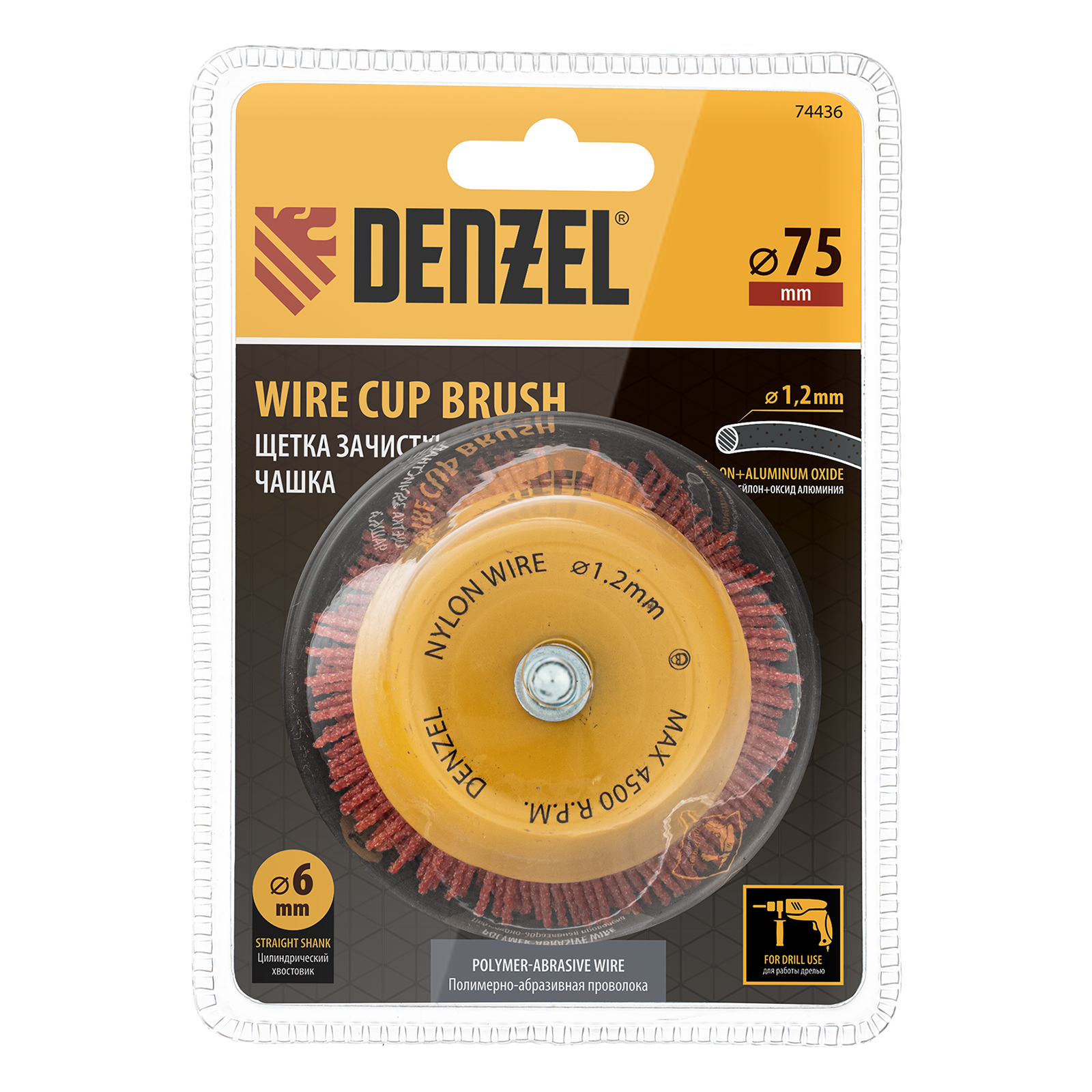 Щетка для дрели, 75 мм, Чашка, со шпилькой, нейлоновая щетина Denzel в Воронеже