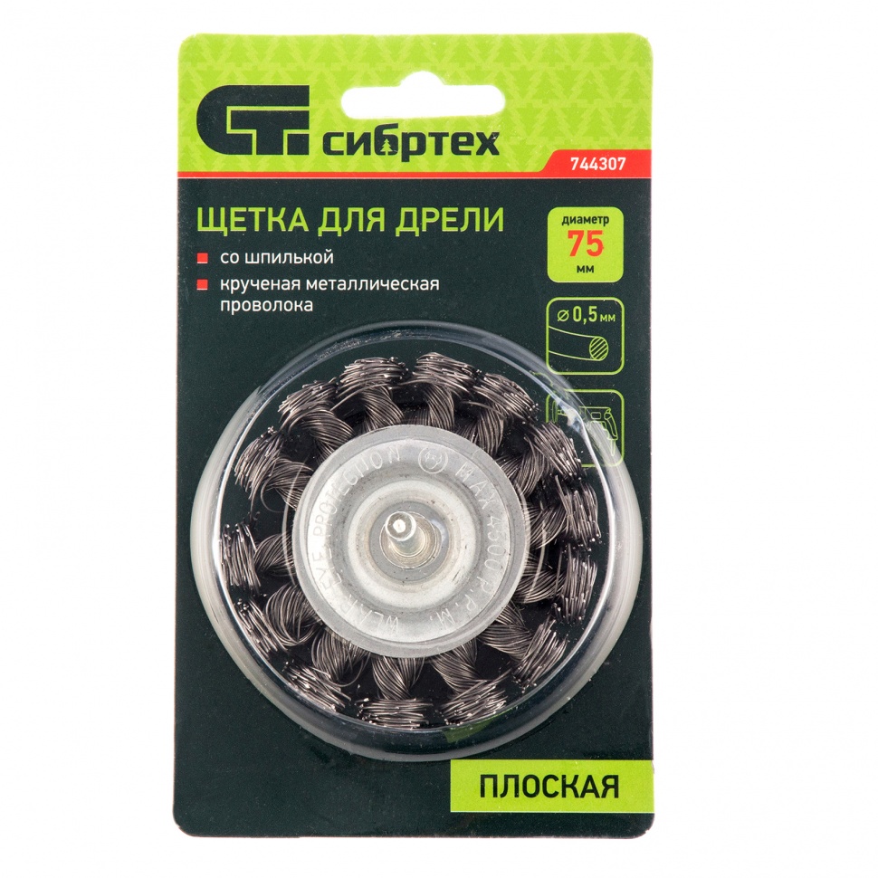 Щетка для дрели, 75 мм, плоская со шпилькой, крученая металлическая проволока 0.5 мм Сибртех в Воронеже