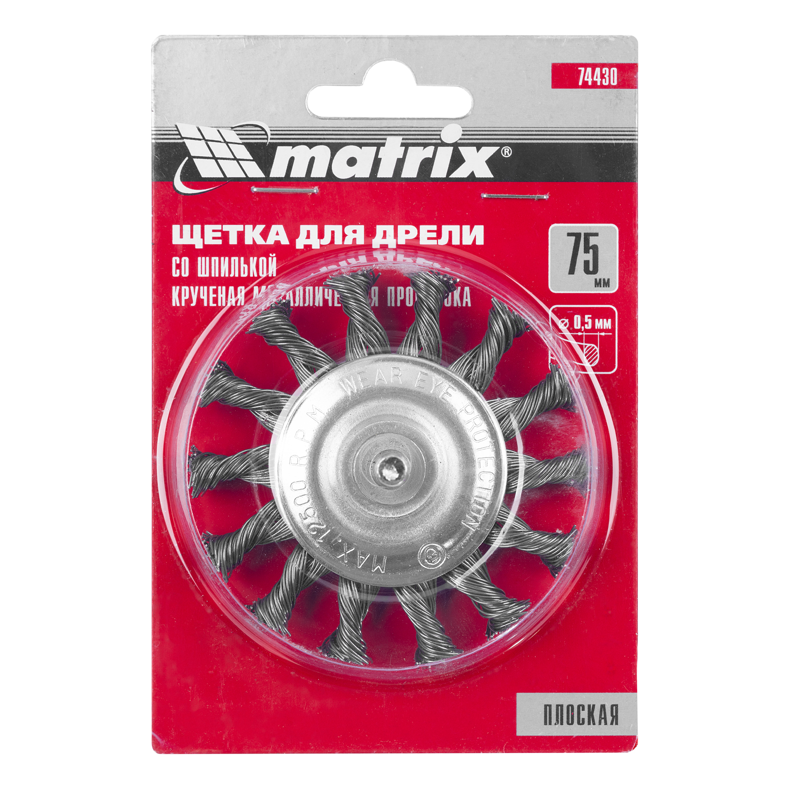 Щетка для дрели, 75 мм, плоская со шпилькой, крученая металлическая проволока Matrix в Воронеже