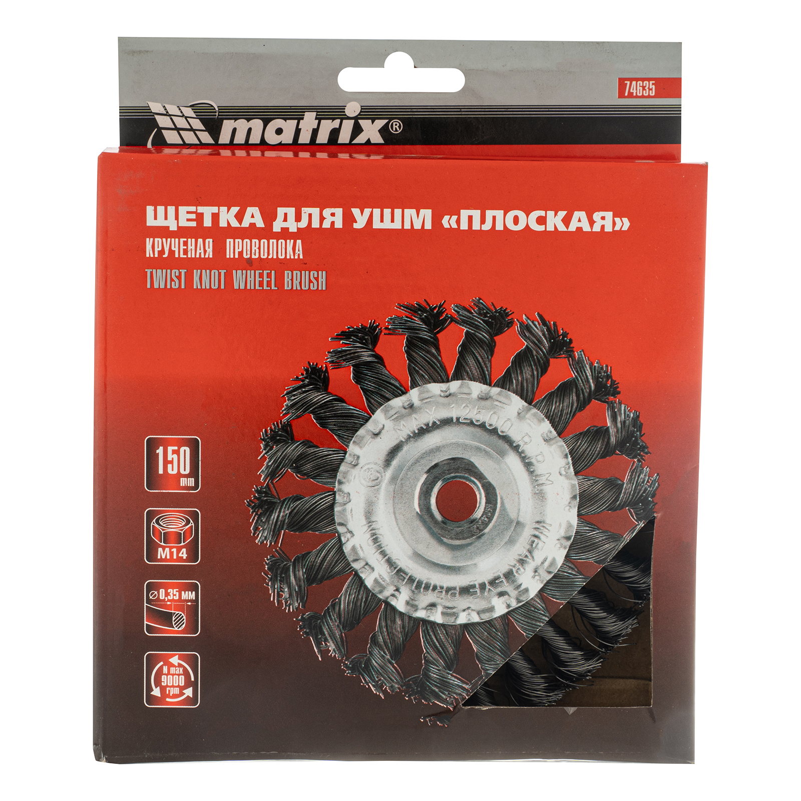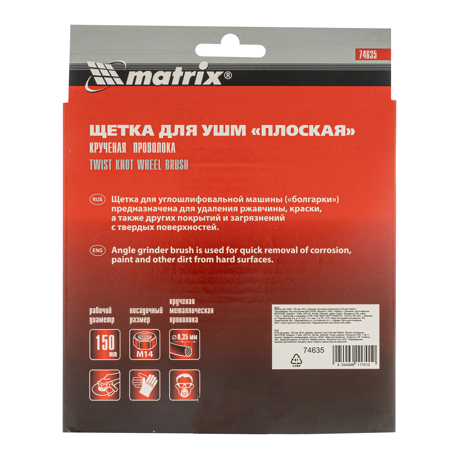Щетка для УШМ 150 мм, М14, плоская, крученая проволока 0.35 мм Matrix в Воронеже