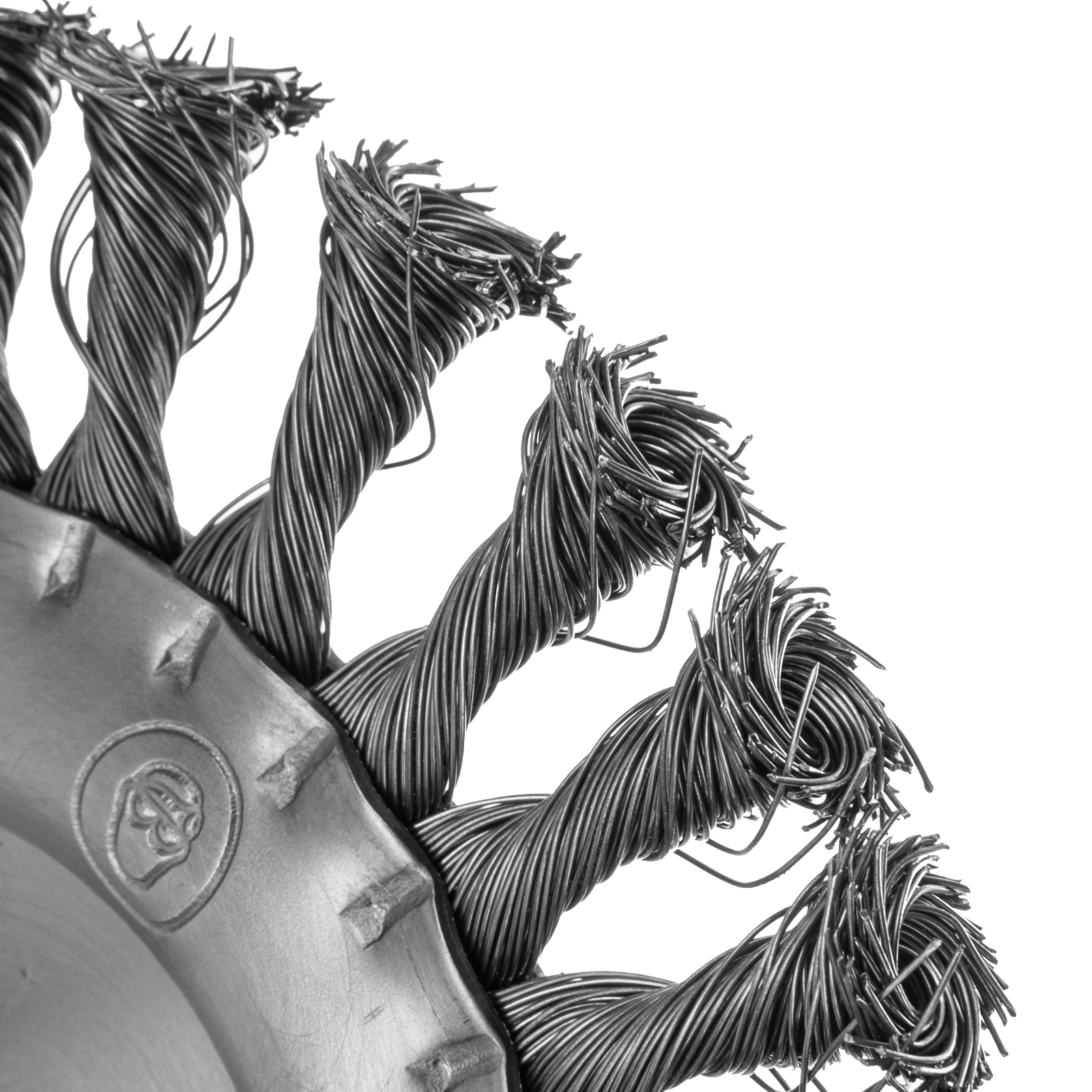 - Толщина щетины 0,35 мм — зачистка носит менее агрессивный характер, чем при использовании щеток с щетиной диаметром 0,5 мм.