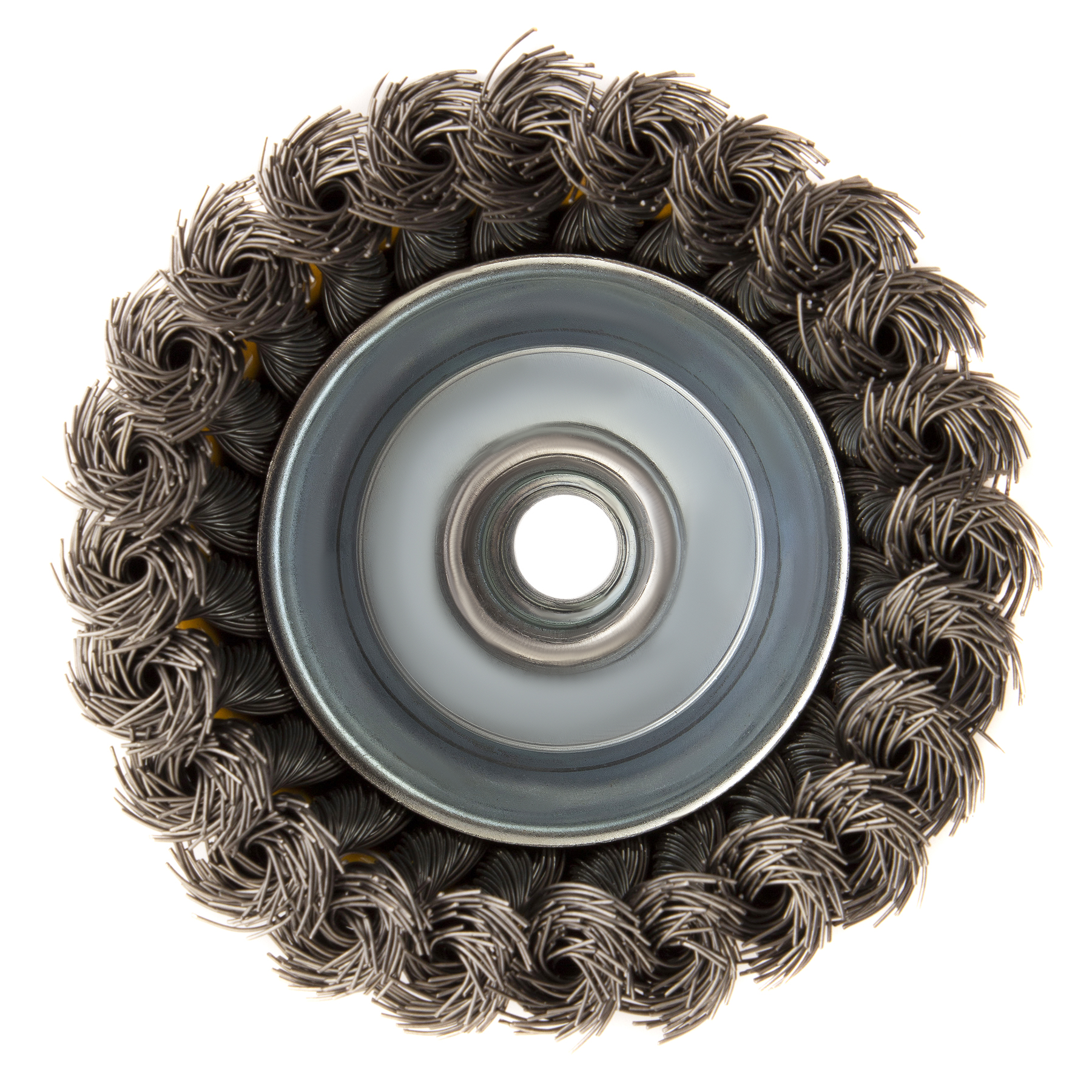 Щетка для УШМ «Чашка» Denzel 746283, М14, диаметром 100 мм, с щетиной из крученой нержавеющей проволоки диаметром 0,5 мм, предназначена для грубой очистки твердых поверхностей от ржавчины, лакокрасочных покрытий, загрязнений, удаления заусенцев, а также для зачистки сварных швов. Снимает толстый слой материала, идеально подходит для обработки изделий из нержавеющей стали. Щетка имеет форму чашки и позволяет очищать участки большой площади. Оснастку устанавливают на вал углошлифовальной машины. Рекомендуемая максимальная скорость вращения составляет 8500 об/мин. Во время работы следует использовать средства индивидуальной защиты — очки, респиратор, наушники, перчатки, а также специальную одежду и обувь. Щетка применяется в строительстве, на производстве, а также в быту.