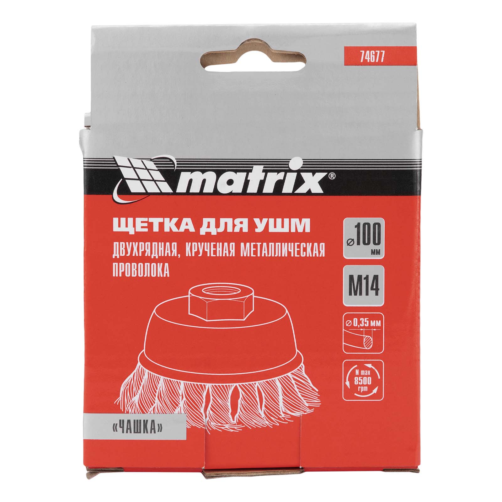 Щетка для УШМ, 100 мм, М14, "чашка", двухрядная, крученая проволока 0.35 мм Matrix в Воронеже