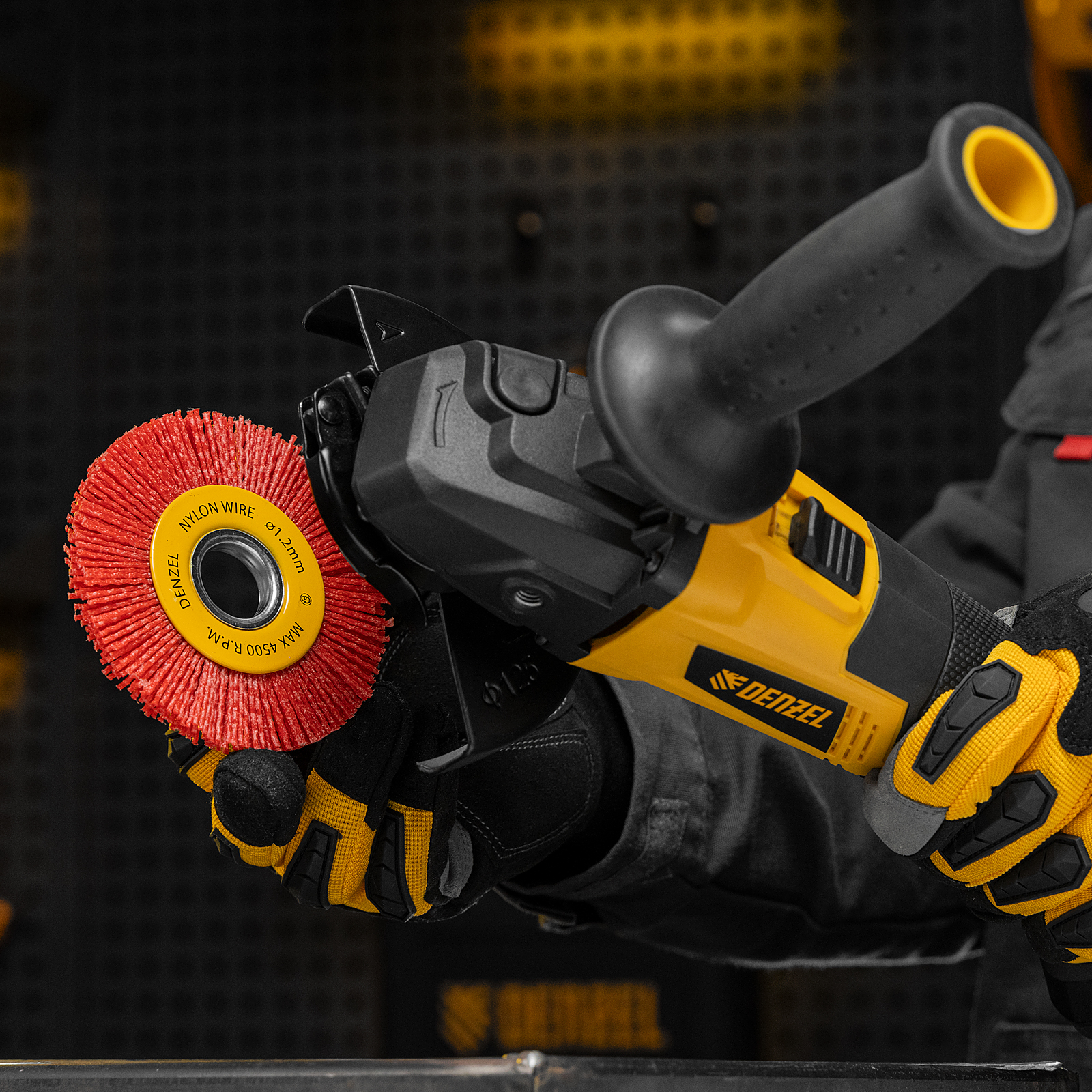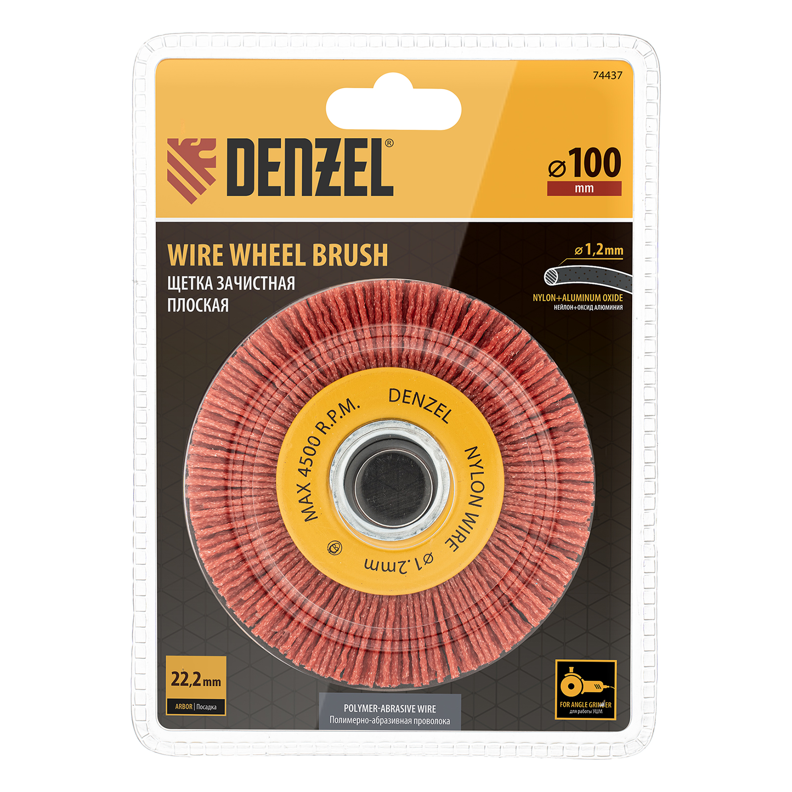 Щетка для УШМ, 100 мм, Плоская, нейлоновая щетина, посадка 22,2 мм Denzel в Воронеже