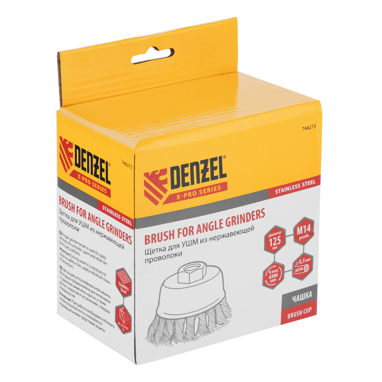 Щетка для УШМ, 125 мм, "Чашка", крученая нержавеющая проволока 0.5 мм, М14 Denzel в Воронеже