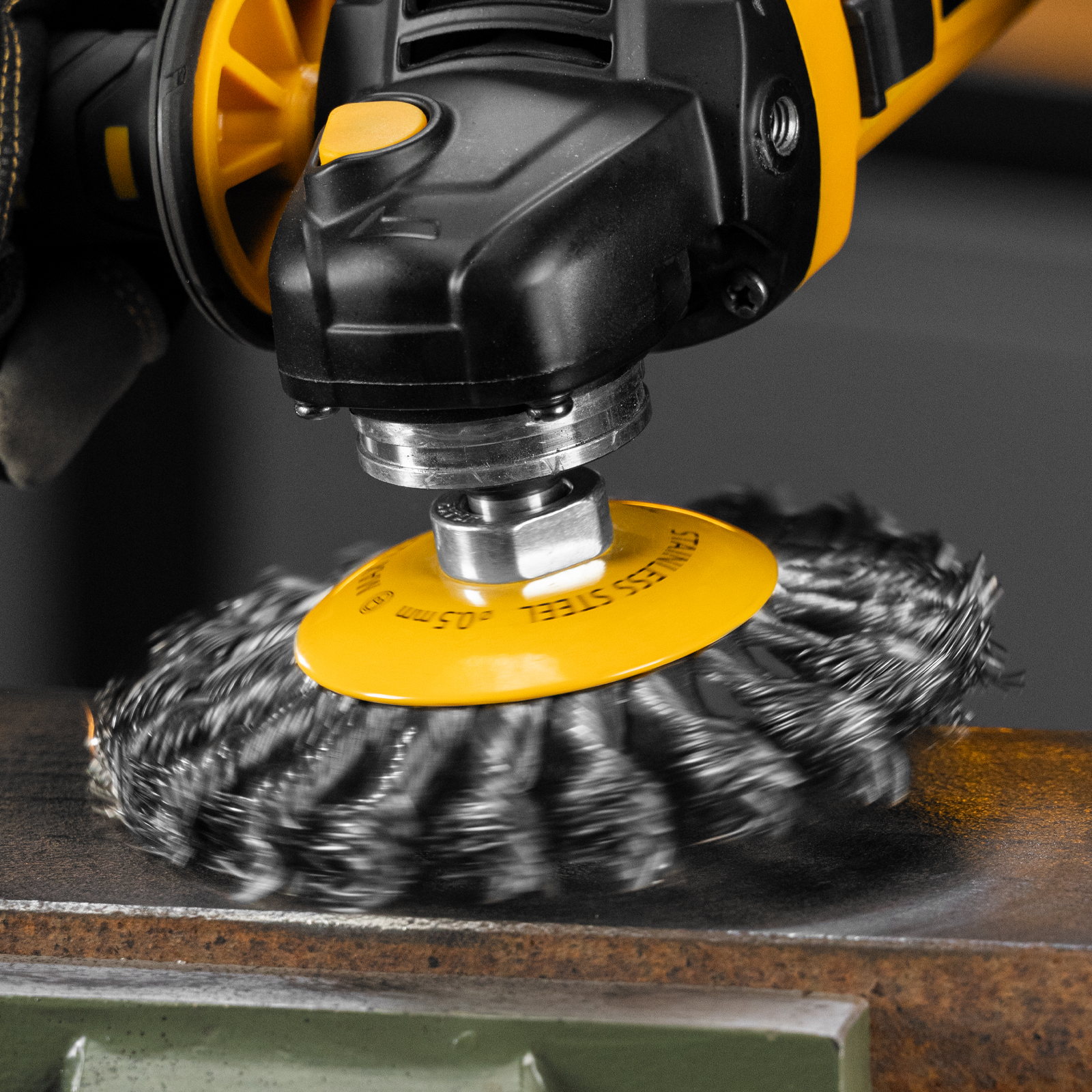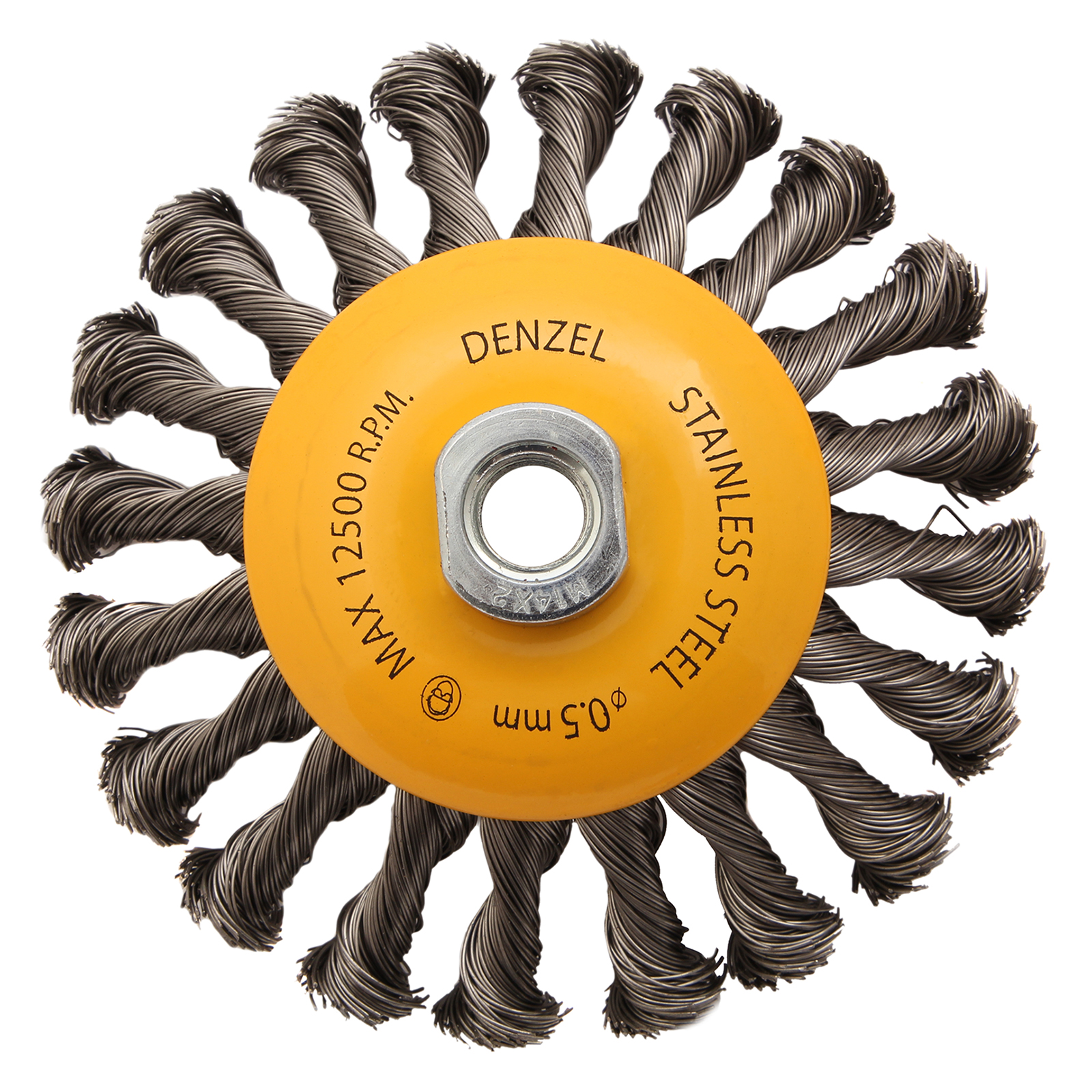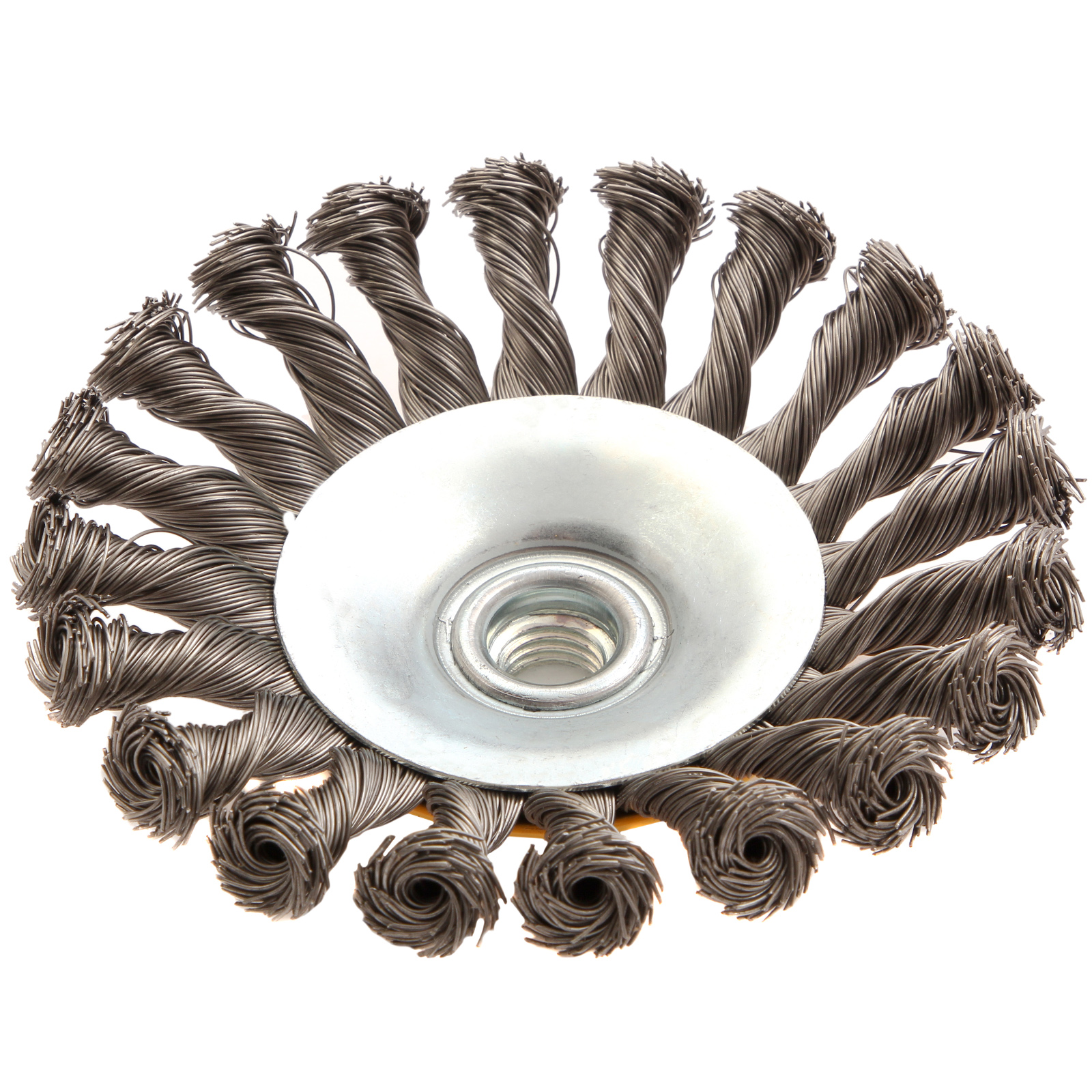 Щетка для УШМ, 125 мм, "Тарелка", крученая нержавеющая проволока 0.5 мм, М14 Denzel в Воронеже