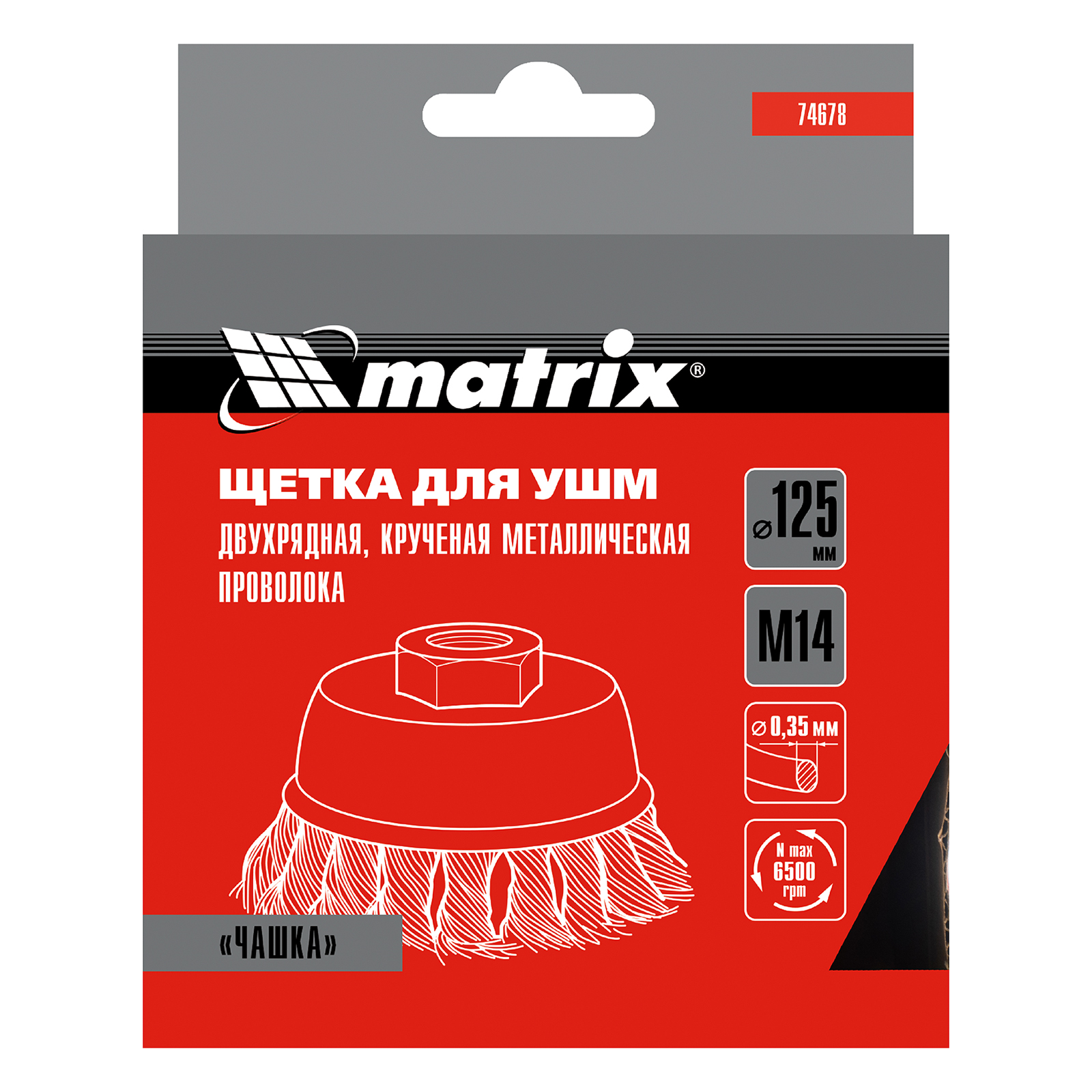 Щетка для УШМ, 125 мм, М14, "чашка", двухрядная, крученая проволока 0.35 мм Matrix в Воронеже