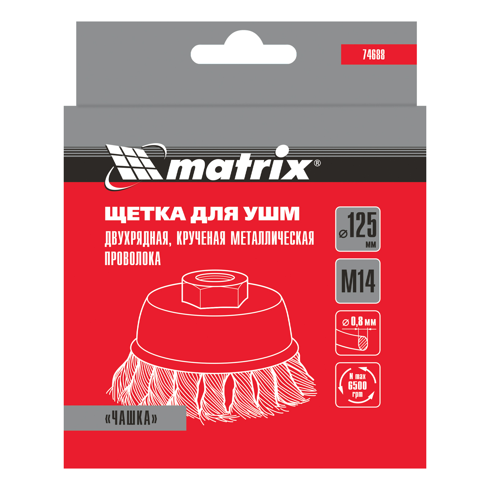 Щетка для УШМ, 125 мм, М14, "чашка", двухрядная, крученая проволока 0.8 мм Matrix в Воронеже
