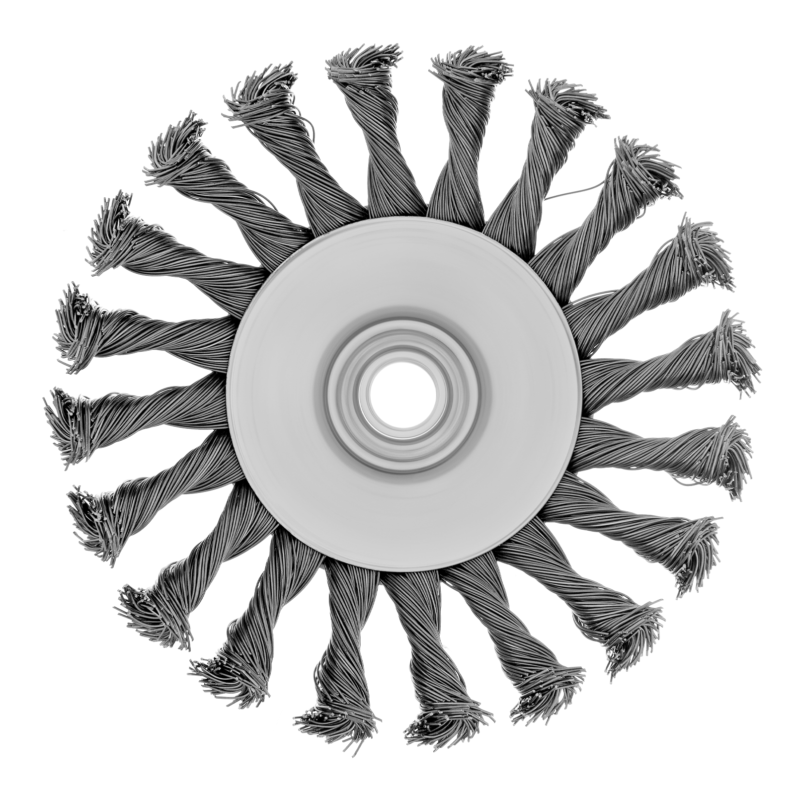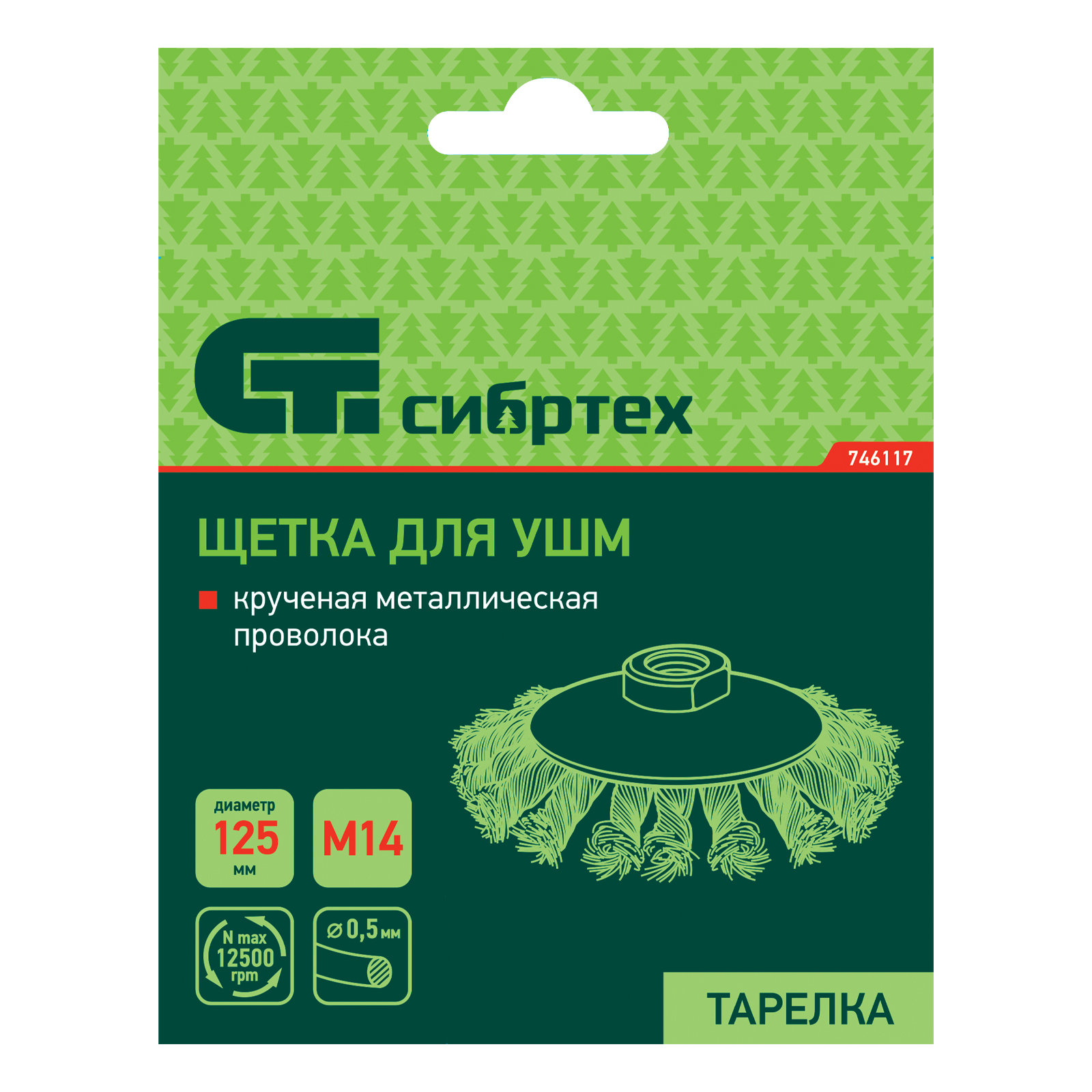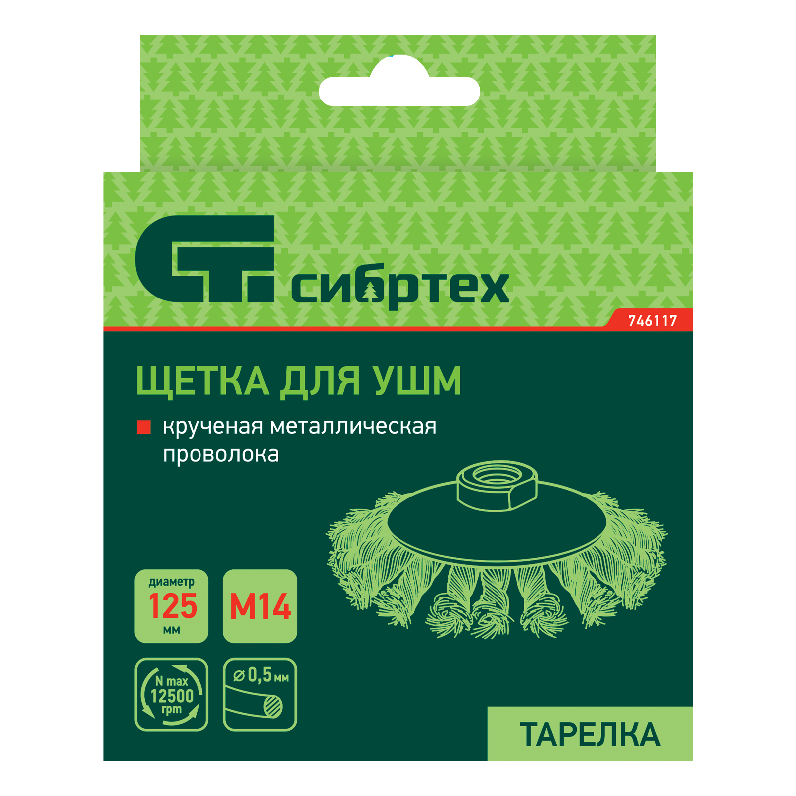Щетка Сибртех «тарелка» 746117 диаметром 125 мм, с щетиной из крученой проволоки толщиной 0,5 мм, устанавливается на УШМ при помощи гайки М14. Выполнена в форме тарелки, за счет чего подходит для грубой (черновой) обработки плоских и угловых поверхностей. Удаляет ржавчину, загрязнения, лакокрасочные покрытия, подходит для зачистки сварных швов. Использование на скорости до 12500 об/мин позволяет продлить срок службы насадки.