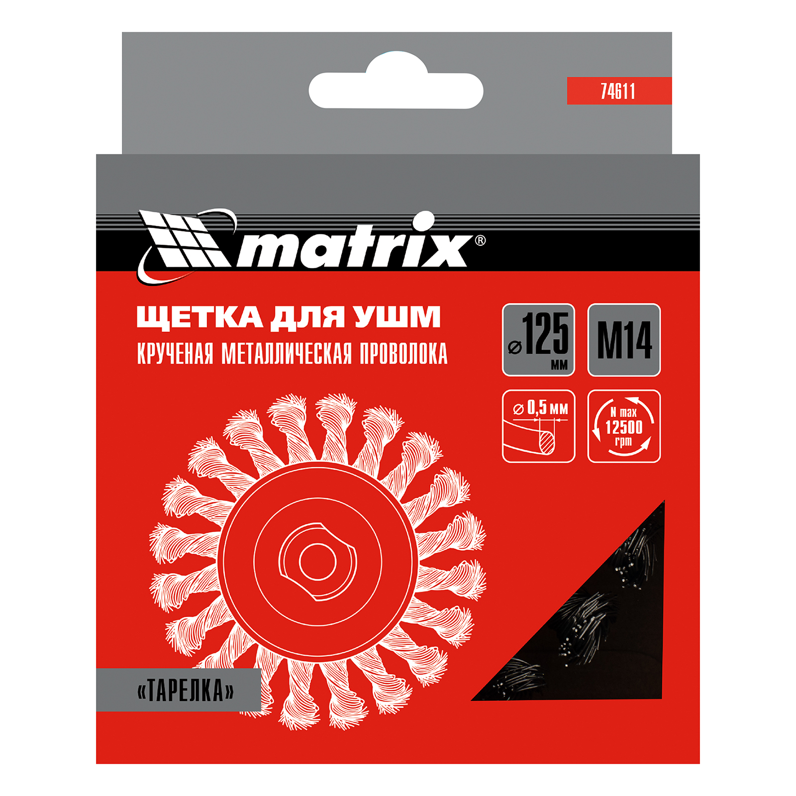 Щетка Matrix «тарелка» 74611 диаметром 125 мм, с щетиной из крученой проволоки толщиной 0,5 мм, устанавливается на УШМ при помощи гайки М14. Выполнена в форме тарелки, за счет чего подходит для грубой (черновой) обработки плоских и угловых поверхностей. Удаляет ржавчину, загрязнения, лакокрасочные покрытия, подходит для зачистки сварных швов. Использование на скорости до 12500 об/мин позволяет продлить срок службы насадки.