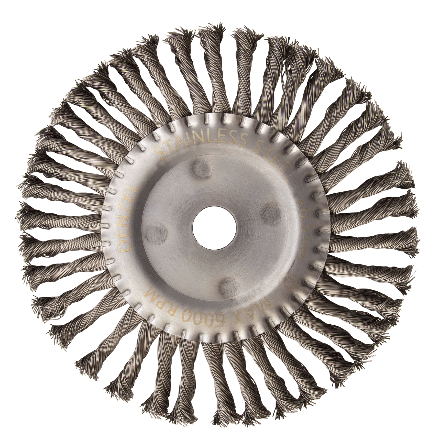 Щетка для УШМ, 200 мм, "Плоская", крученая нержавеющая проволока 0.5 мм, посадка 22.2 мм Denzel в Воронеже