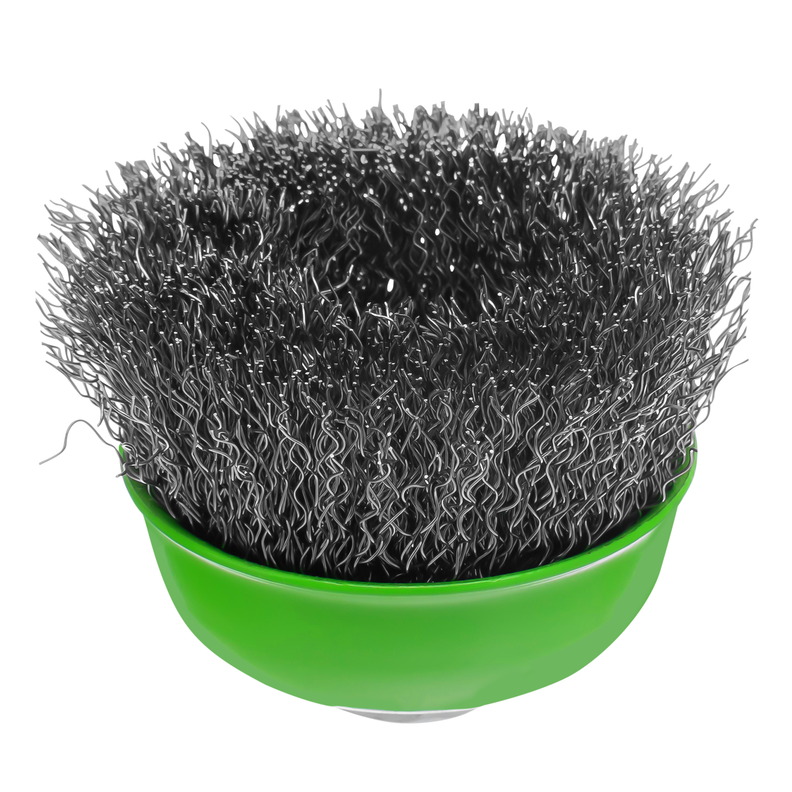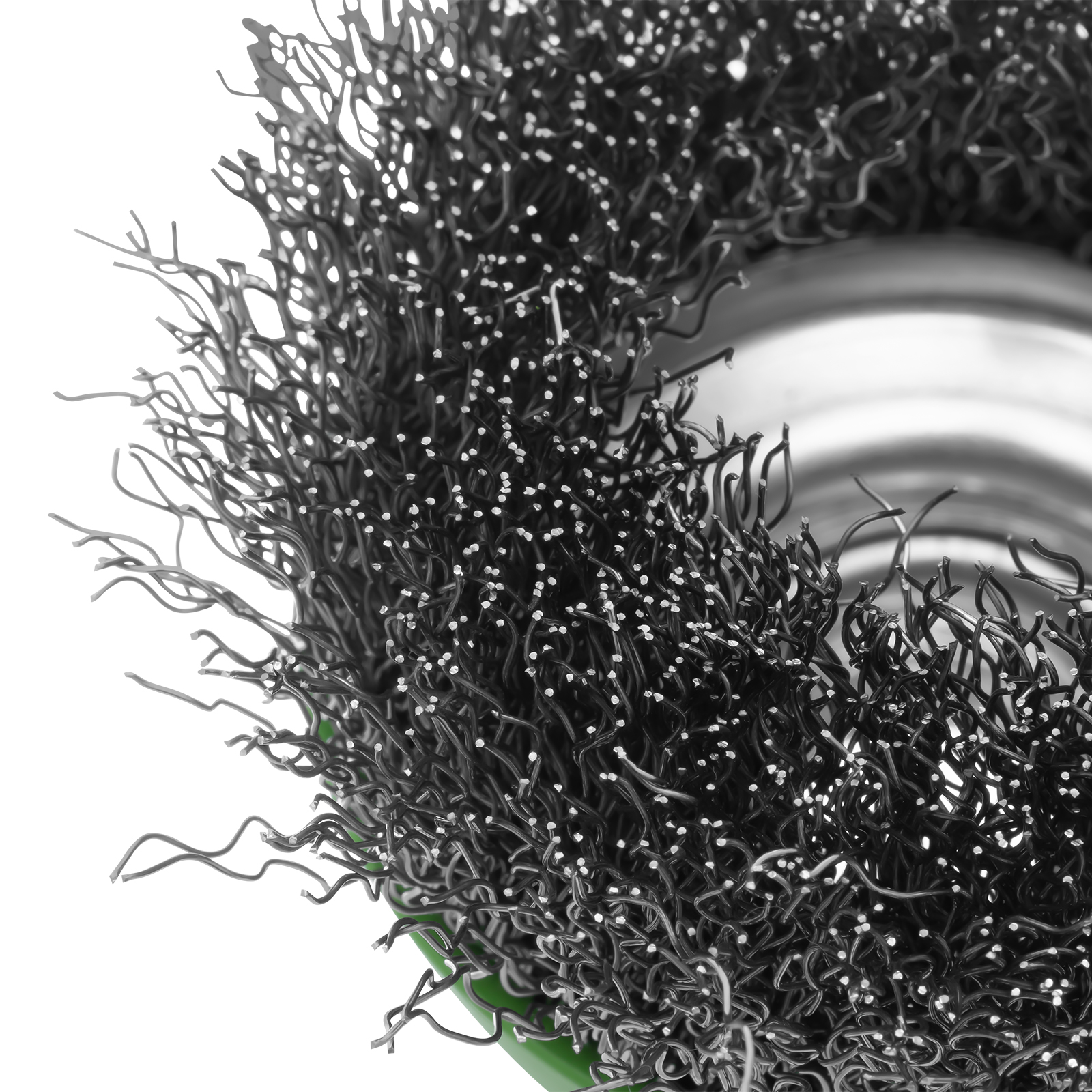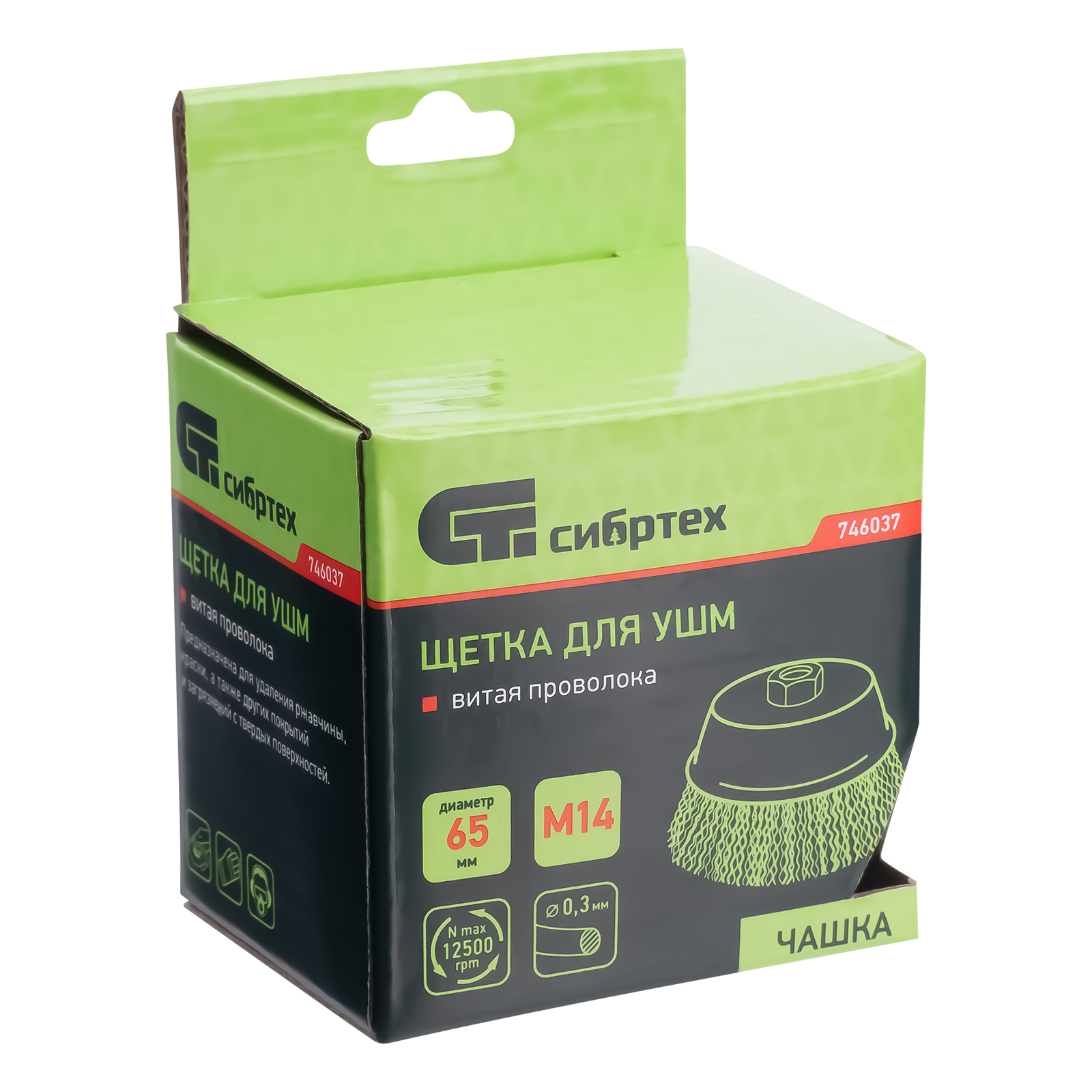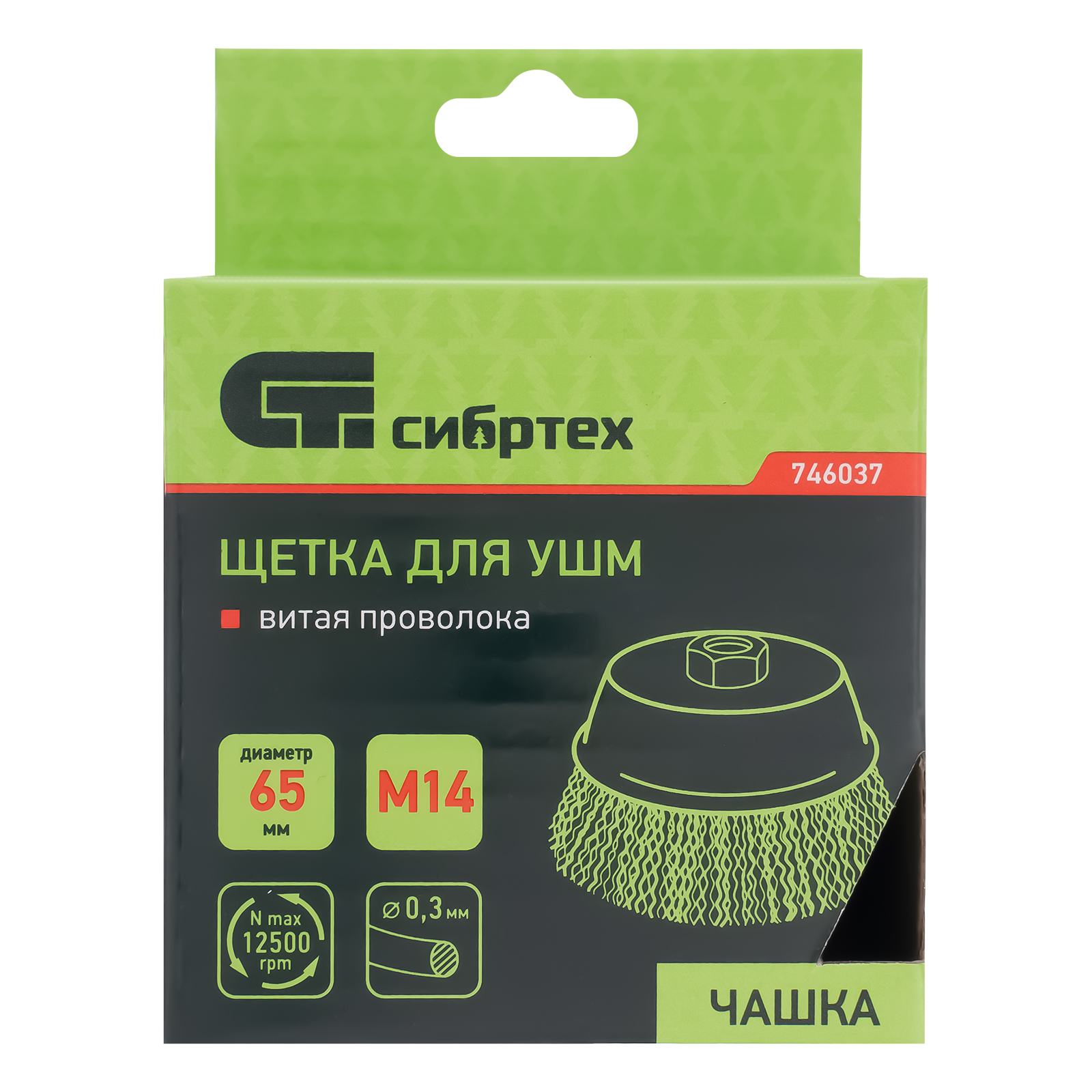 Щетка для УШМ Сибртех «чашка» 746037, М14, диаметром 65 мм, с щетиной из витой проволоки 0,3 мм, предназначена для постепенного снятия тонкого слоя материала с металлических, деревянных и пластиковых поверхностей. Удаляет ржавчину, загрязнения, а также остатки краски и других покрытий. Подходит для обработки участков значительной площади. Щетку устанавливают на вал углошлифовальной машины (УШМ), рекомендуемая максимальная скорость вращения 12500 об/мин. Работать с оснасткой следует в спецодежде.