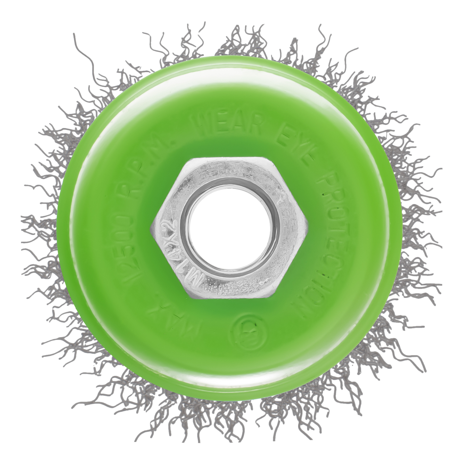 - Быстрая установка и замена насадки — щетка крепится на вал УШМ при помощи гайки М14.