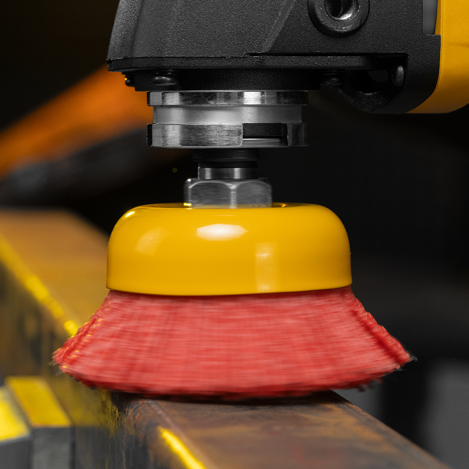 - Высокое качество обработки — в отличие от металлической, нейлоновая щетина не оставляет следов на деревянных поверхностях.