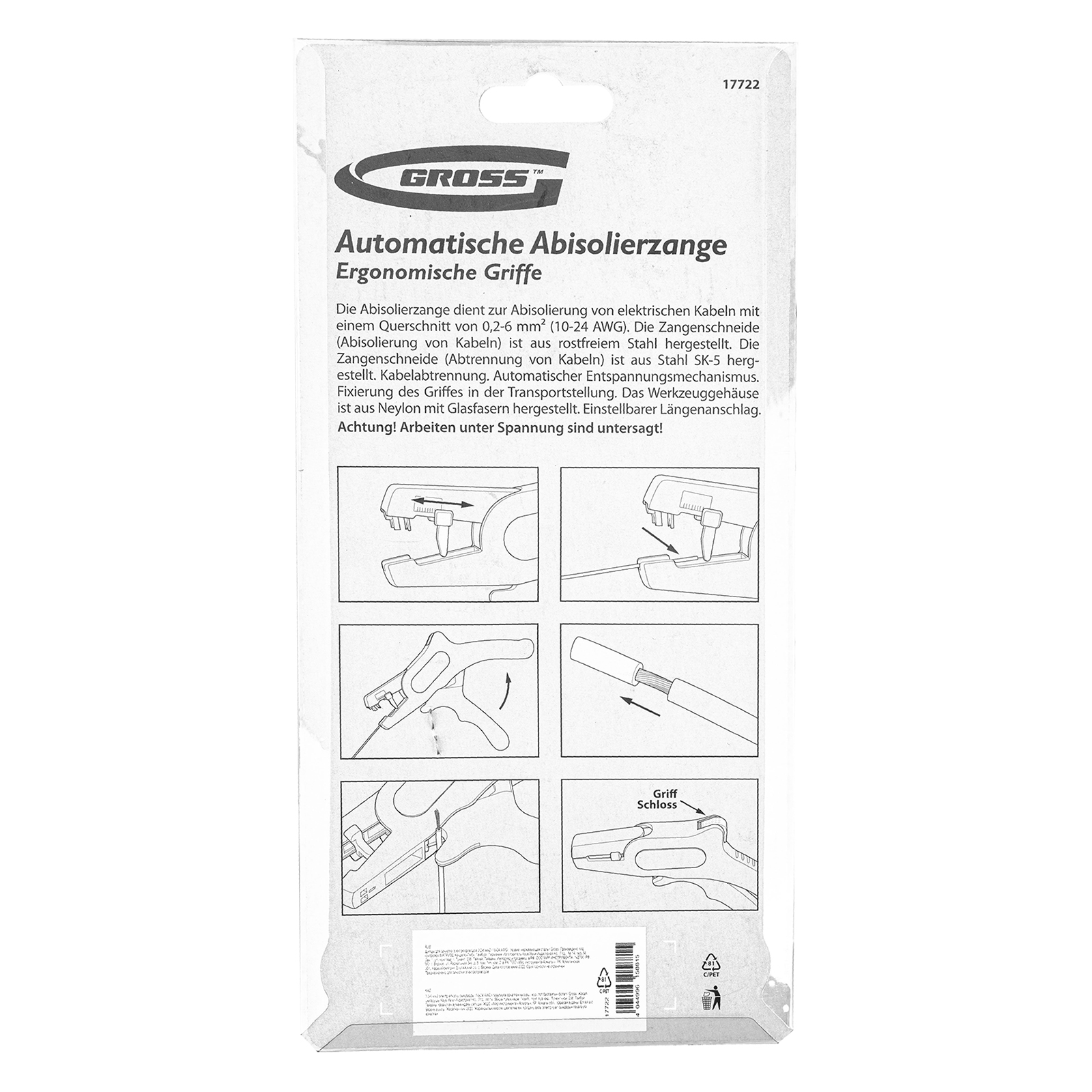 Щипцы для зачистки электропроводов 0.2-6 мм2 (10-24 AWG) лезвие: нержавеющая сталь Gross в Воронеже