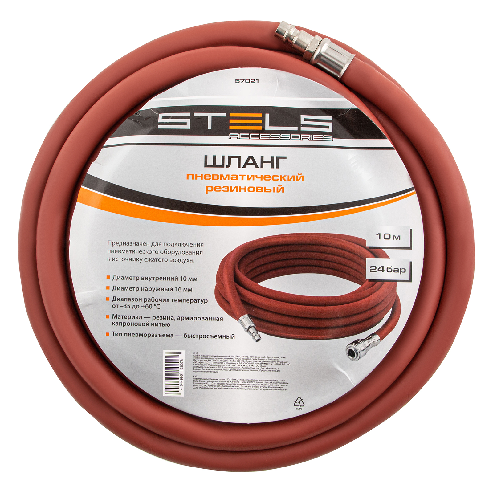 Шланг пневматический резиновый, 10 x 16 мм, 24 бар, армированный, быстросъемное соединение, 10 м Stels в Воронеже