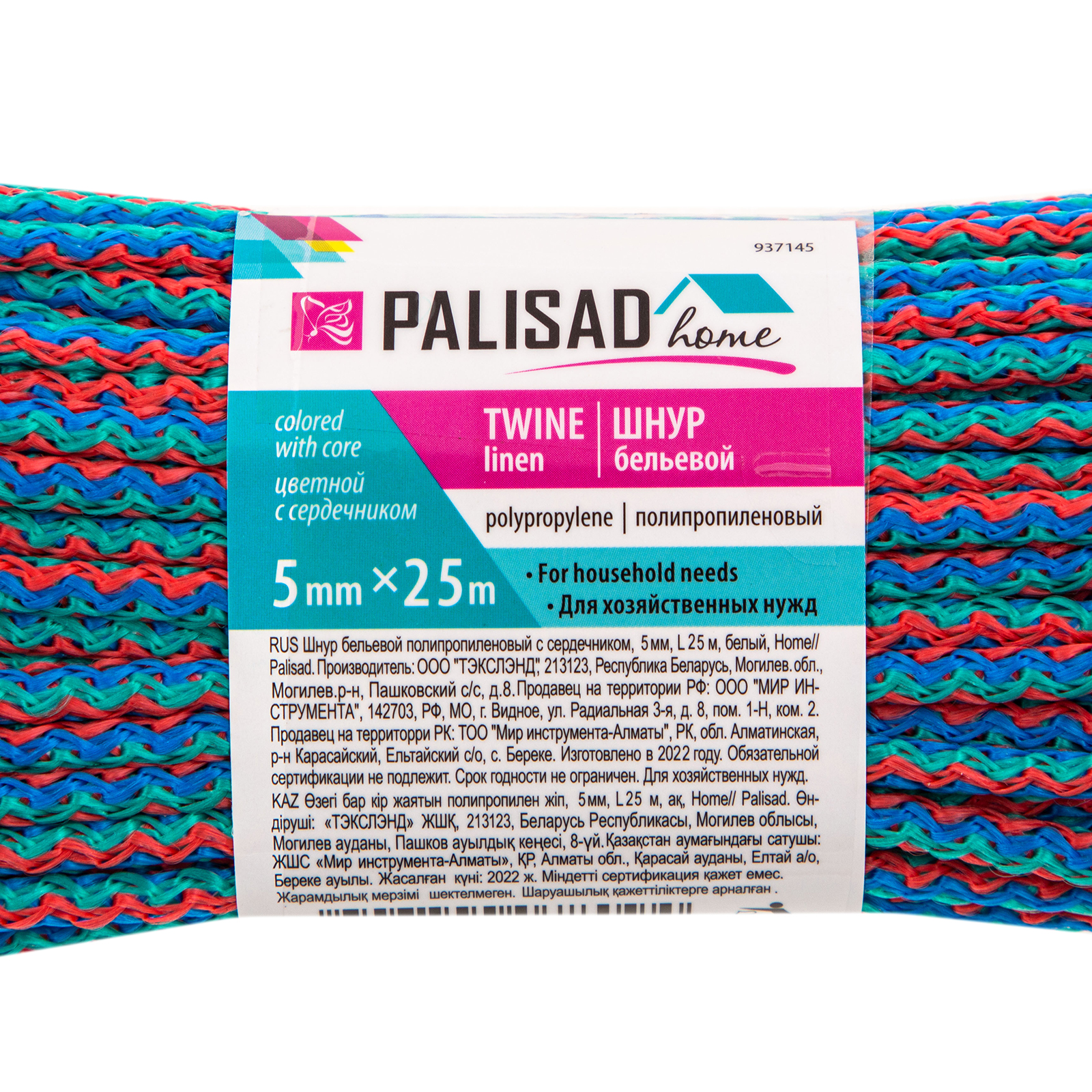 Шнур бельевой полипропиленовый с сердечником, 5 мм L 25 м, цветной, Home Palisad в Воронеже