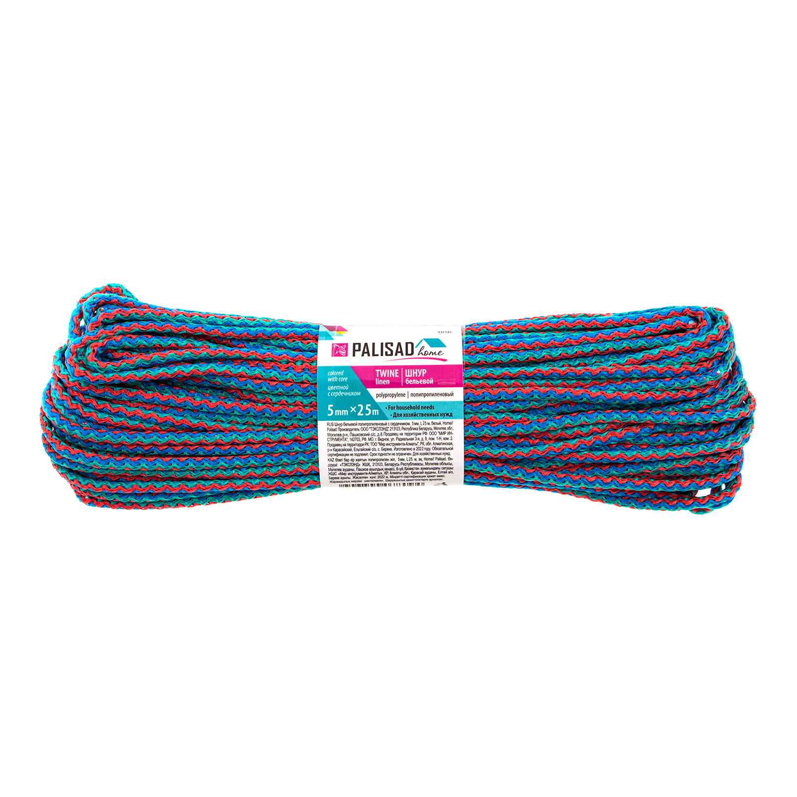 Цветной полипропиленовый бельевой шнур Palisad Home 937145 с сердечником, диаметром 5 мм и длиной 25 м, используется для сушки белья, а также в качестве хозяйственной веревки в быту, на рыбалке или в походе. От обычной бельевой веревки для сушки он отличается сердечником из полипропилена, увеличивающим стойкость к нагрузкам. Шнур с полипропиленовой оплеткой выдерживает разрывную нагрузку до 70 кгс, устойчив к растяжению и не провисает под весом мокрых вещей.