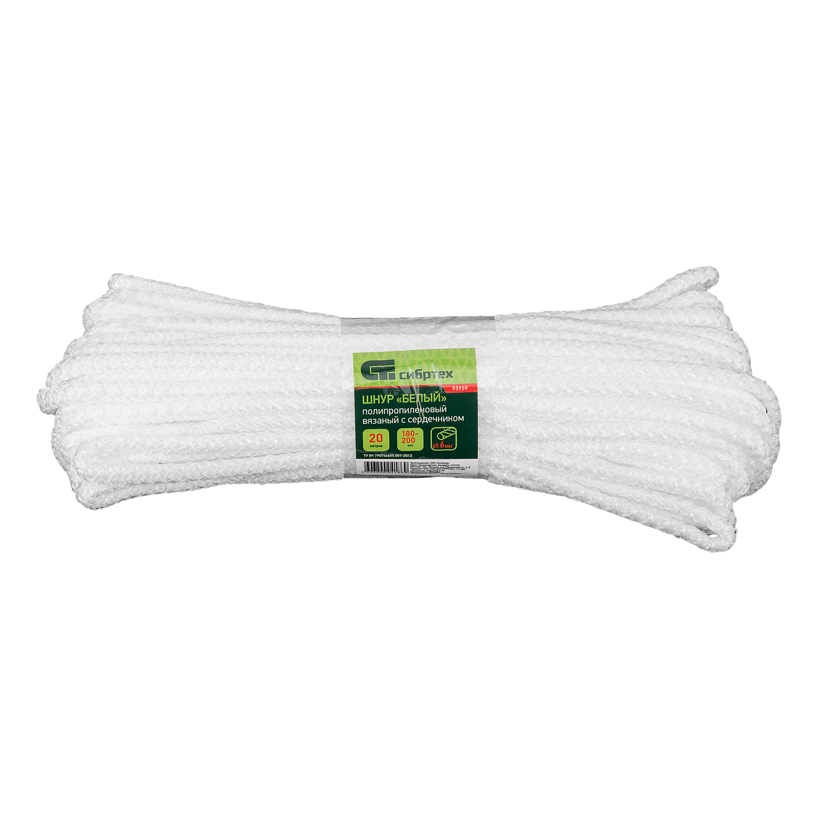Шнур вязаный полипропиленовый с серд. белый, 6 мм, L 20 м, Сибртех в Воронеже