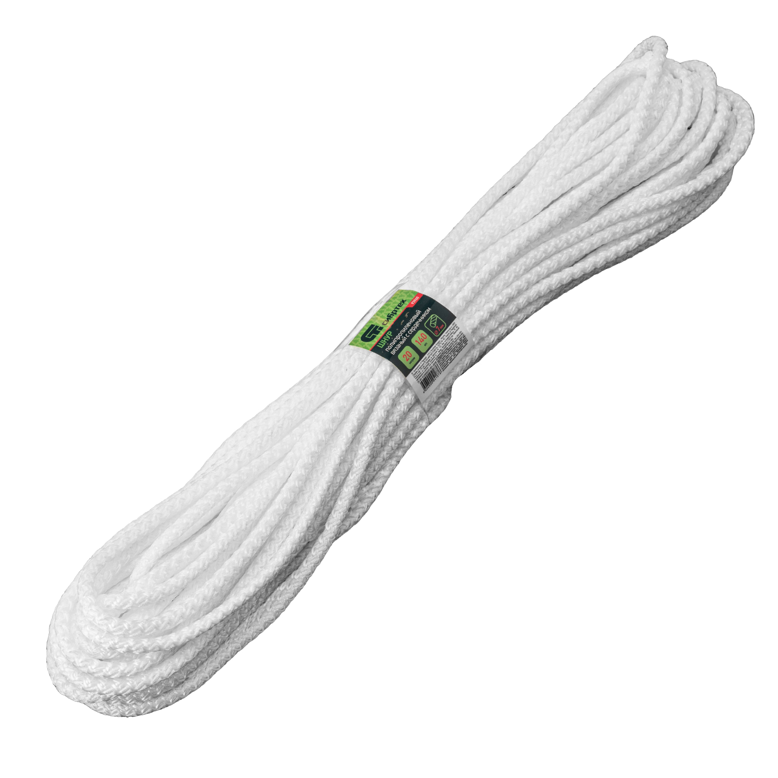 Шнур вязаный полипропиленовый с серд. белый, 7 мм, L 20 м, Сибртех в Воронеже