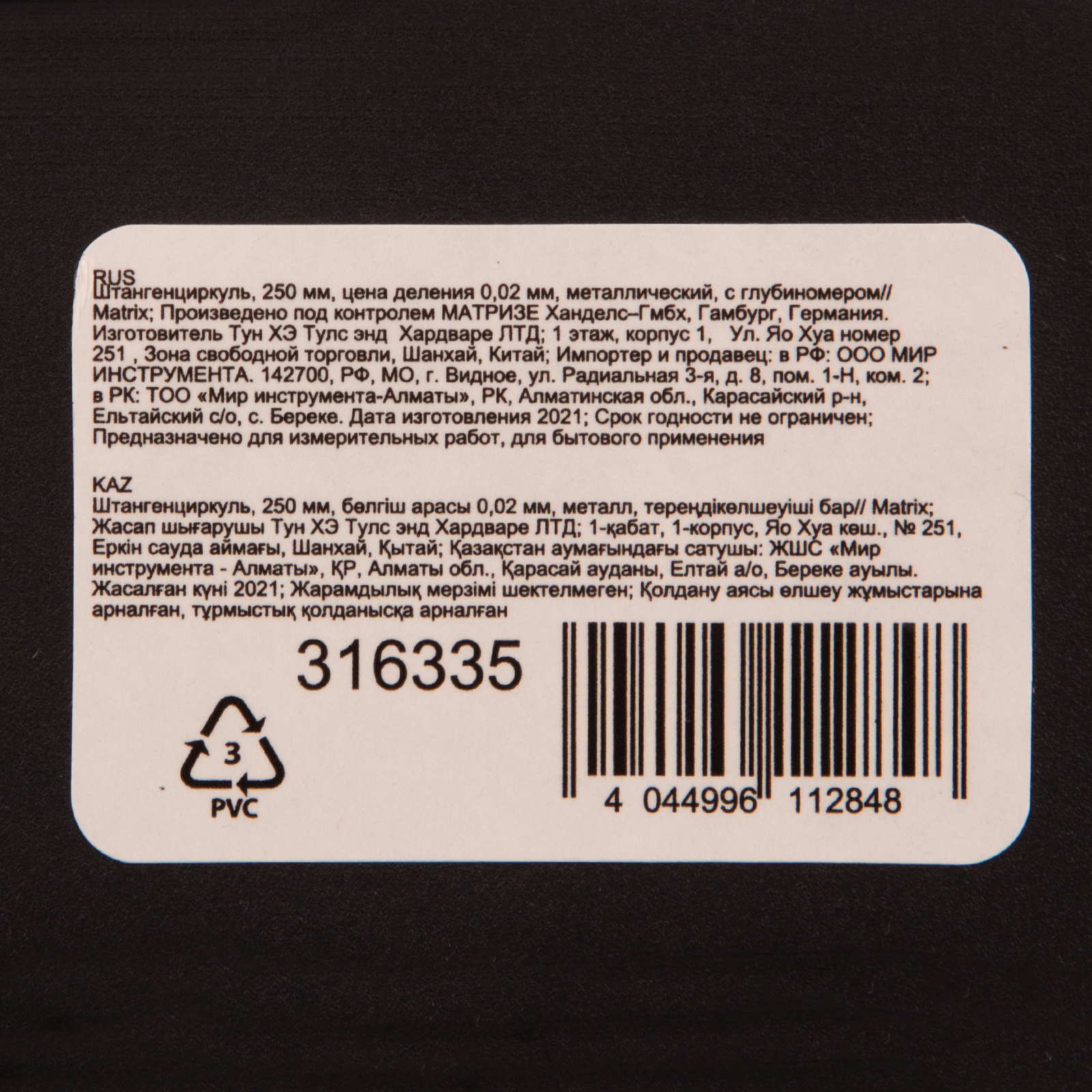 Штангенциркуль, 250 мм, цена деления 0.02 мм, металлический, с глубиномером Matrix в Воронеже