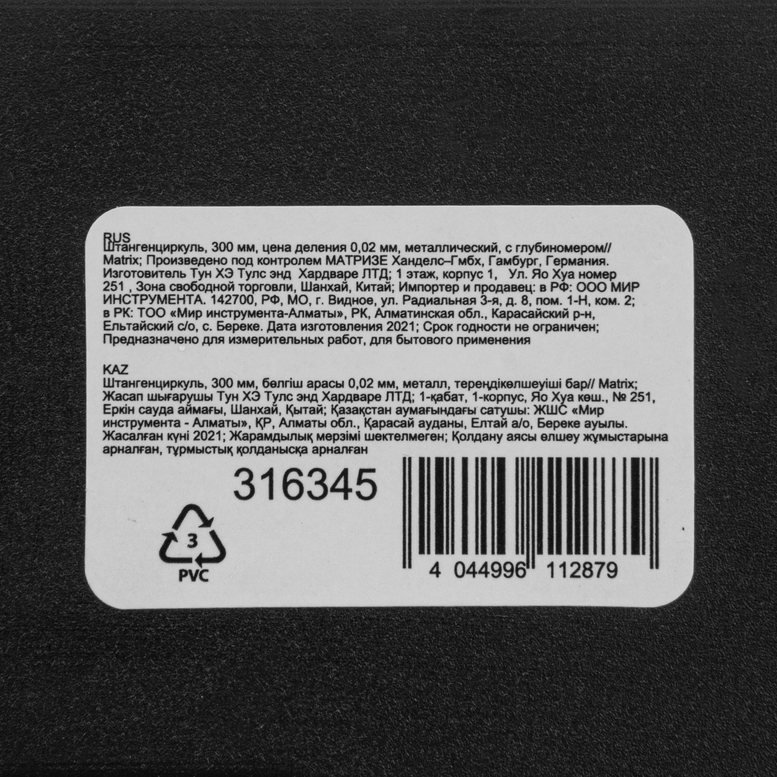 Штангенциркуль, 300 мм, цена деления 0.02 мм, металлический, с глубиномером Matrix в Воронеже