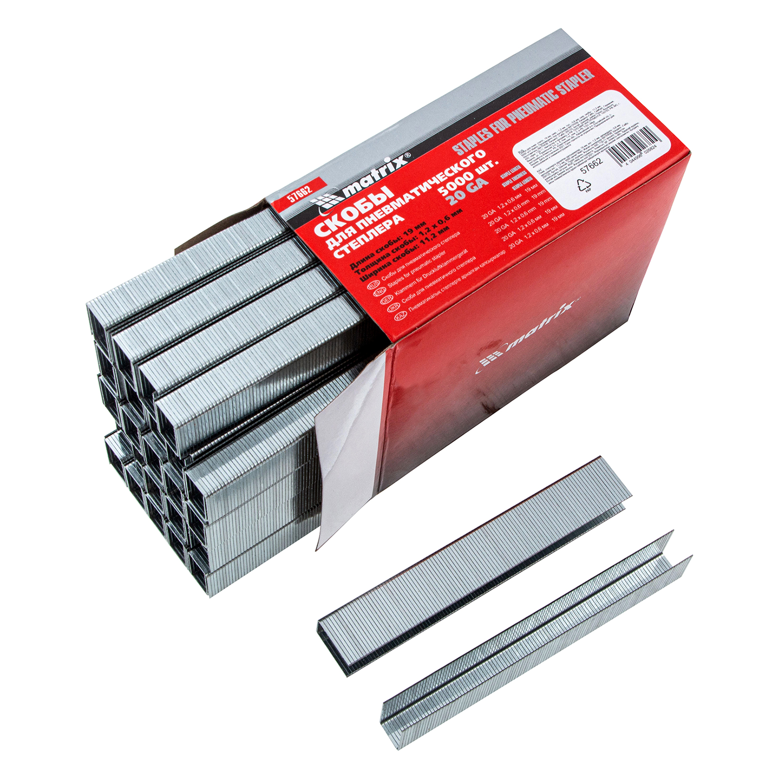 Скобы для пневматического степлера, 19 мм, ширина 1.2 мм, толщина 0.6 мм, ширина скобы 11.2 мм, 5000 шт Matrix в Воронеже