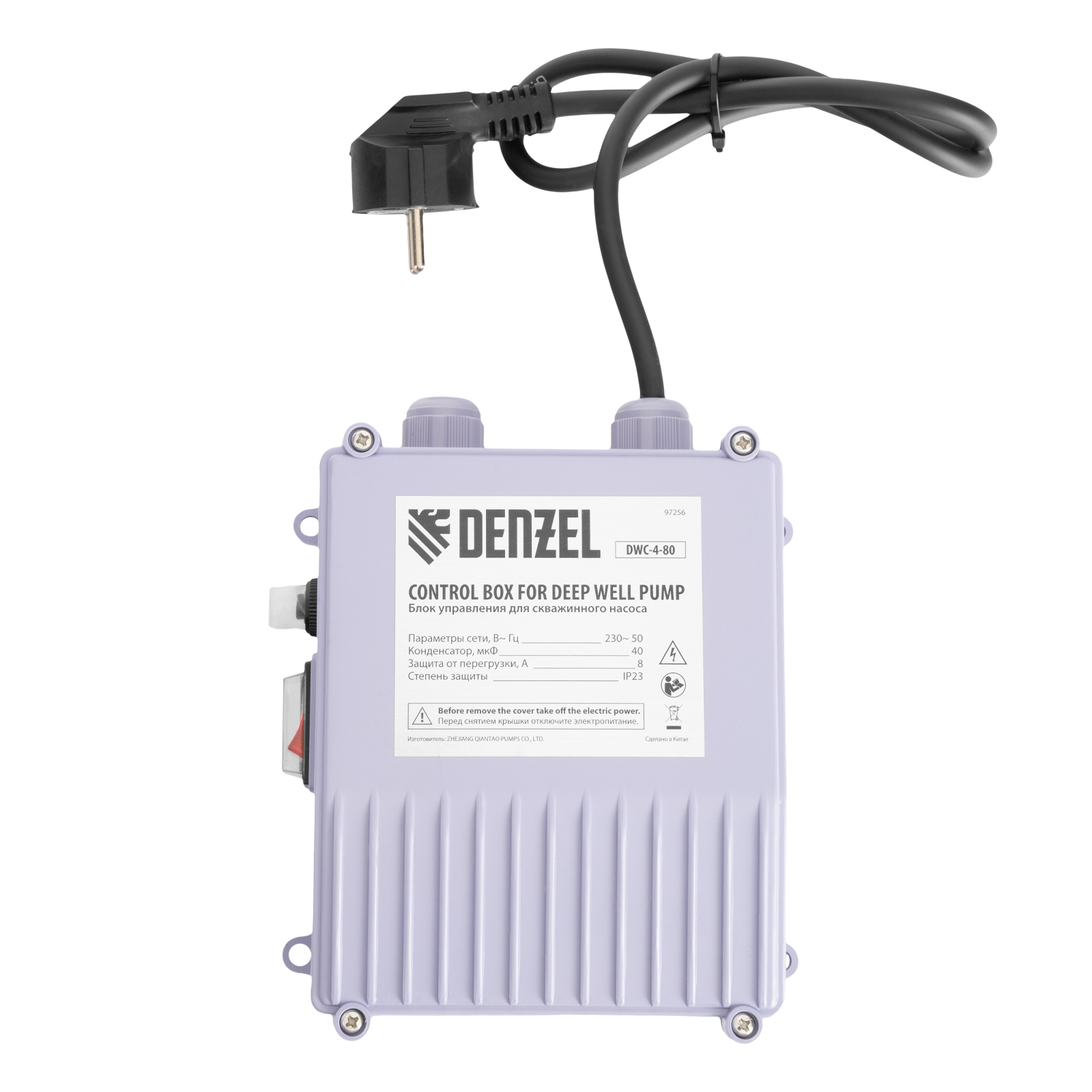 - Удобное управление — насос подключается к выносному блоку с реле защиты от перегрузки и выключателем питания.