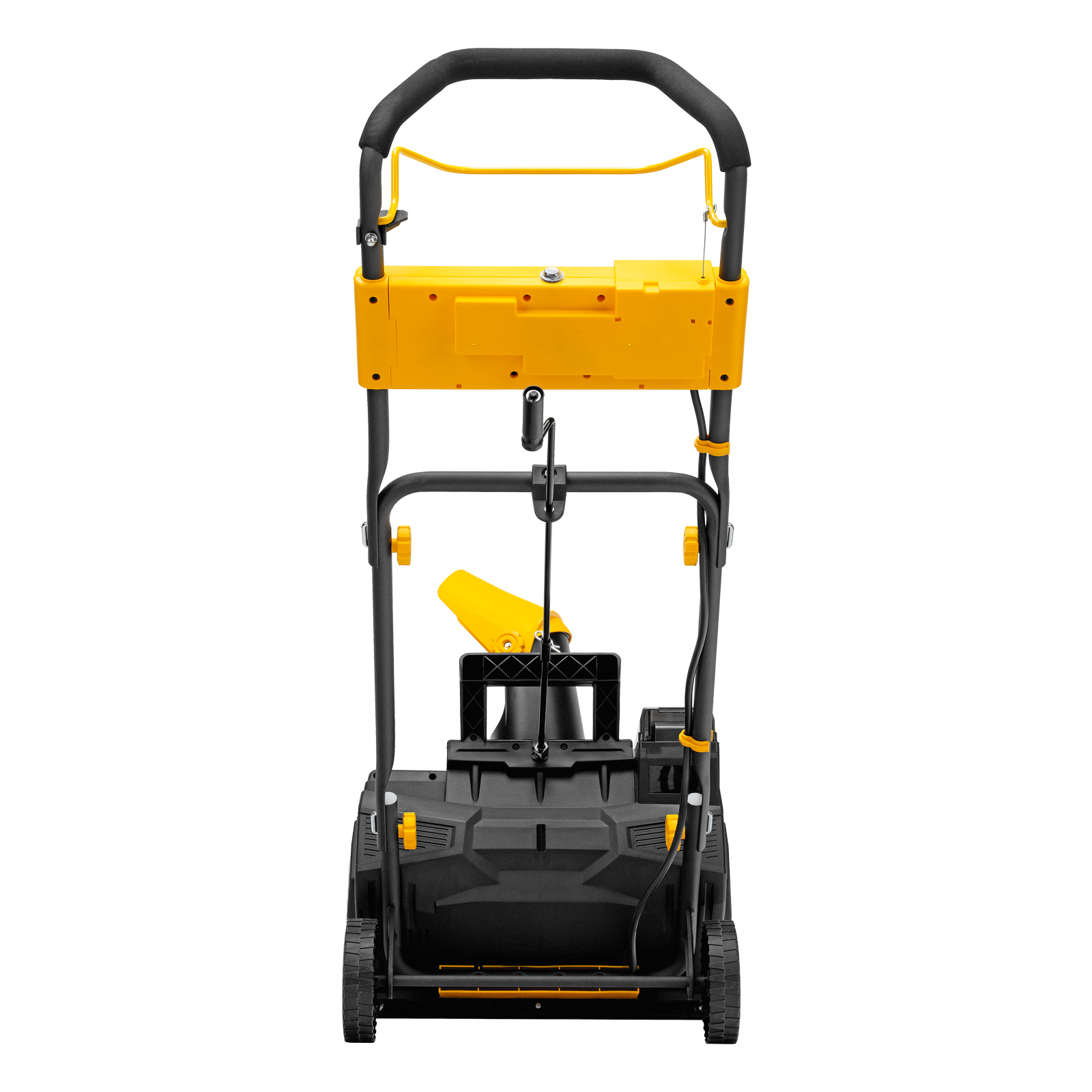Аккумуляторная снегоуборочная машина Denzel ESB-460-0 97636 предназначена для очищения ровных поверхностей от снега, поможет расчистить дорожки, тротуары, придомовую территорию, парковку. Ширина захвата составляет 460 мм, что позволяет быстрее справляться с уборкой. Работает от 2 аккумуляторов Li-Ion с рабочим напряжением 18 В и емкостью 4 А·ч каждый.
