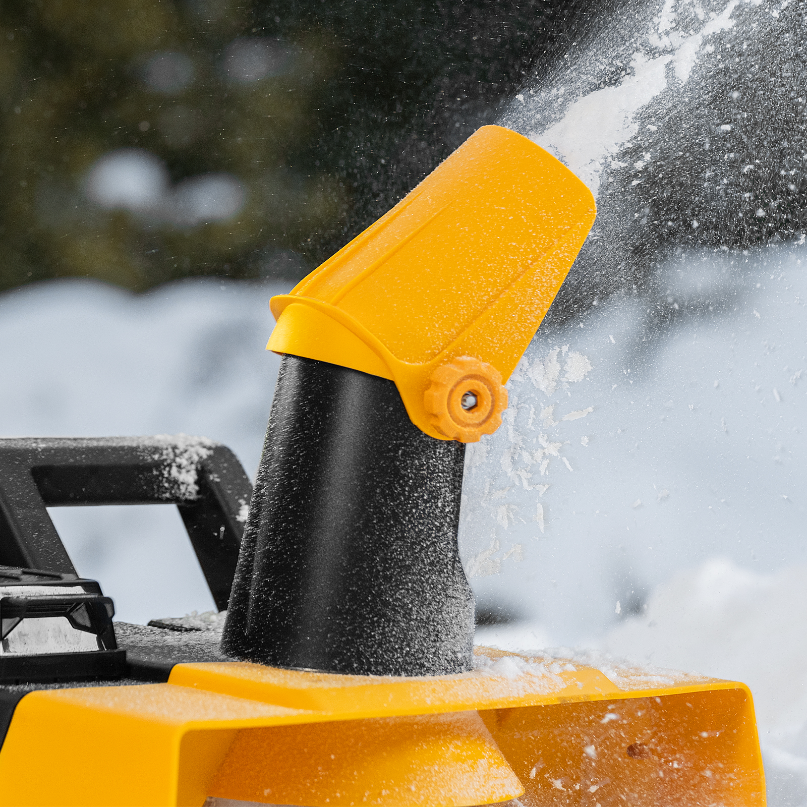 - Регулировка направления выброса снега — угол поворота желоба можно изменить при помощи удобной рукоятки.