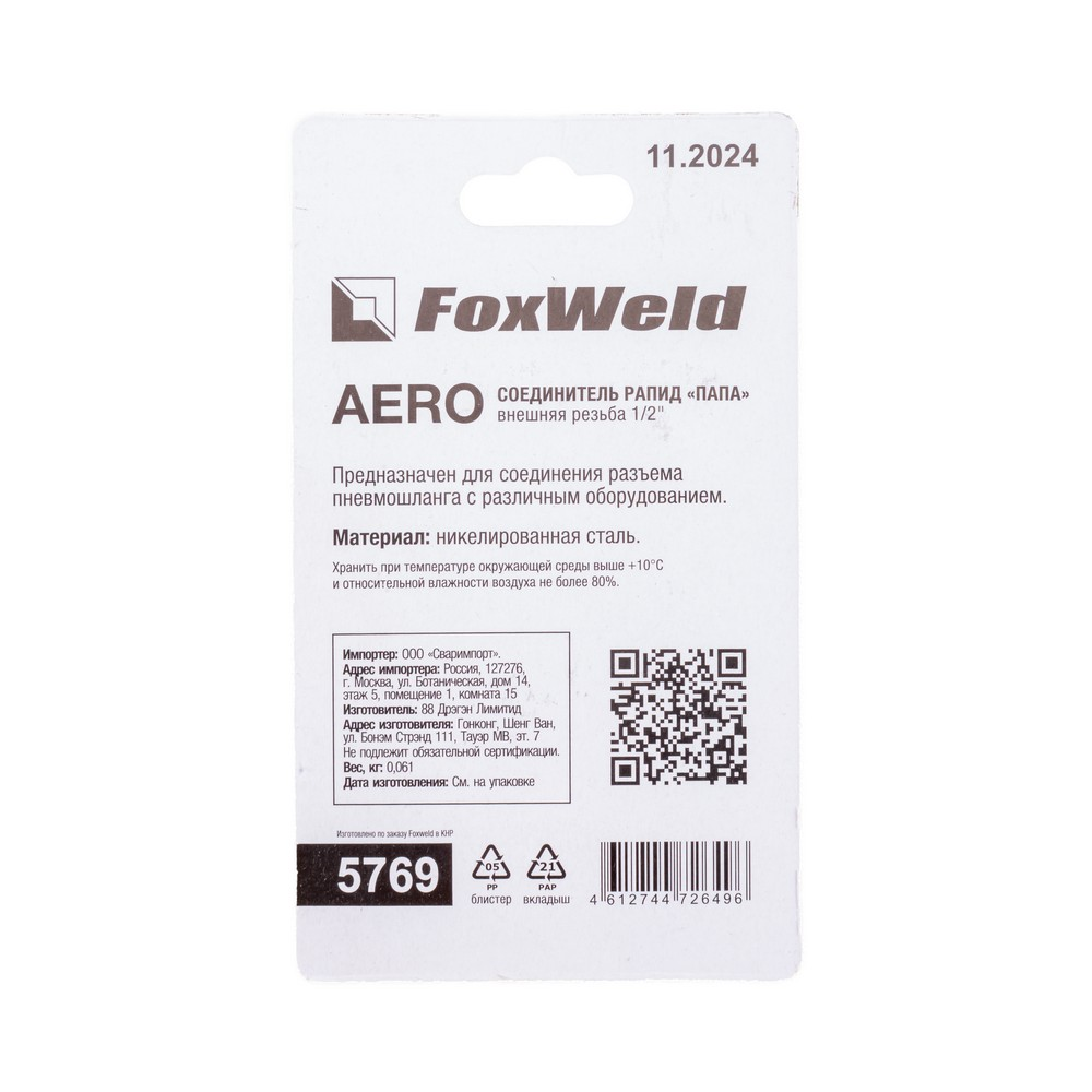 Соединитель Rapid M "Папа" - внешняя резьба 1/2" AERO в Воронеже